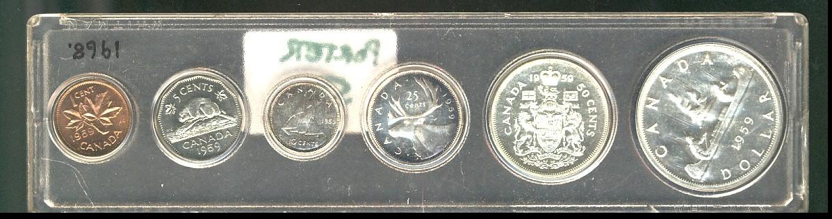 Proof-like set, 1959, in plastic year set. An average set with lightly toned coins. The cent is toned.