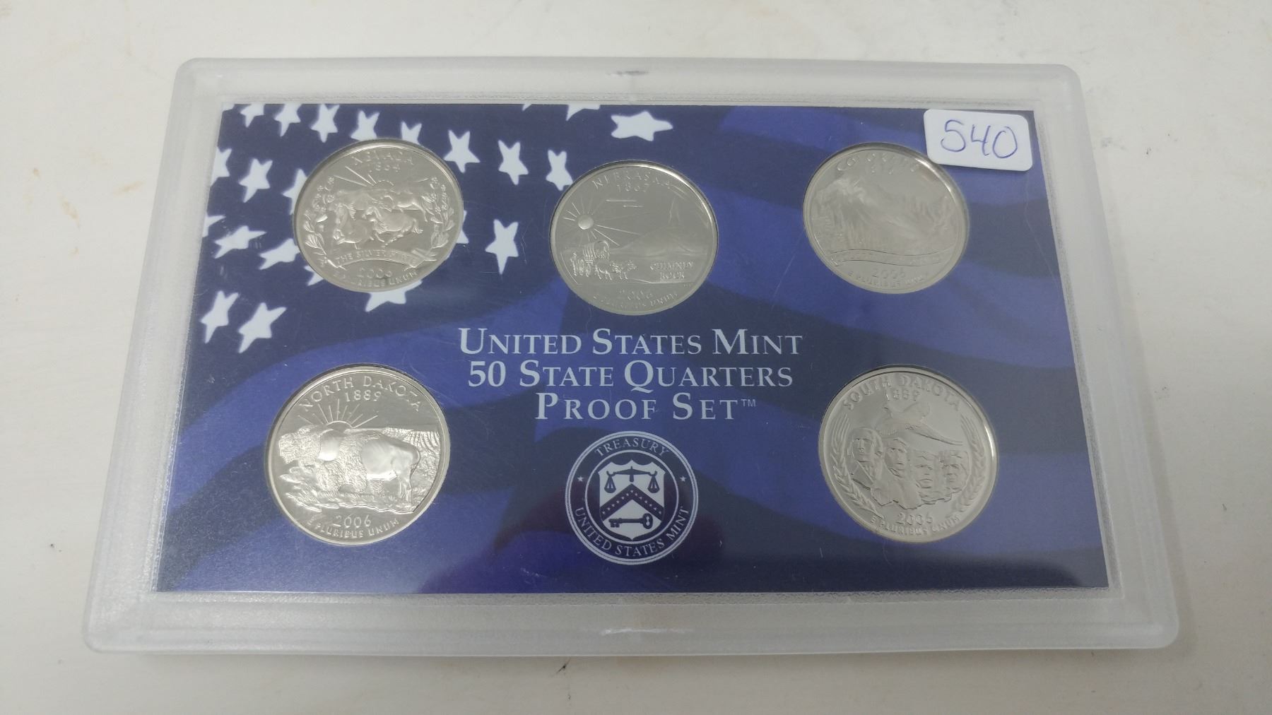 Proof set of 5 U.S. State quarters from the San Francisco Mint: 2006S Nevada, Nebraska, Colorado, North Dakota, South Dakota.