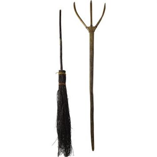 <B>Prop Broom and Pitchfork From "Van Helsing."</B></I> An old-world style twig broom and wooden pitchfork used as props in the 2004 action/horror film. Both are in Excellent condition with mild wear from use during production.<I>Accompanied by LOA from LA Prop & Wardrobe Company.</B></I><BR><BR><b>Shipping:</b> Clothing, Costumes & Jerseys (<a target="_blank" href="http://www.heritageauctions.com/common/shipping.php">view shipping information</a>)