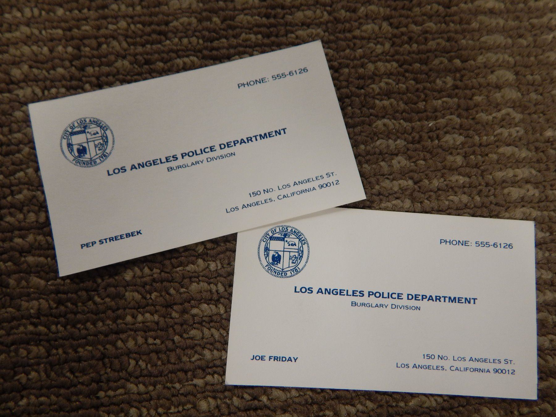 Set of screen used business cards from the film Dragnet starring Tom Hanks and Dan Aykroyd. All items come with a certificate of authenticity good for the life of the piece.