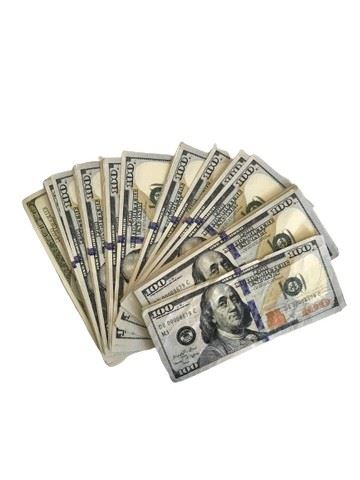 Prop money stack of $100 dollar bills.