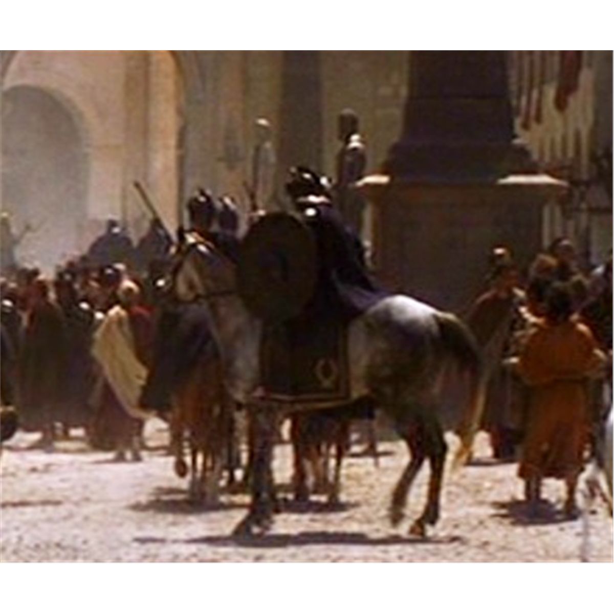 These shields were used by the Praetorian Roman Cavalry characters in several key scenes of the film. They appeared notably during the sequence when the Roman Cavalry ransack the home of "General Maximus" (Russell Crowe) and murder his family. They also appear in several scenes when Maximus and his fellow gladiators enter Rome to compete in the Coliseum games.