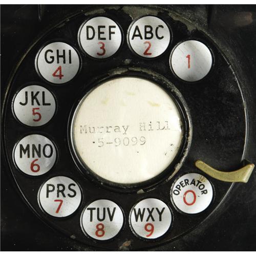 <B>Prop Telephone from "I Love Lucy."</B></I> A vintage Western Electric telephone from the greatest sitcom ever, with "Murray Hill 5-9099" printed on the rotary dial. Murray Hill and Circle were actual call names used in Manhattan at the time the show was on the air, and the Ricardos had three different telephone numbers during the series: MUrray-hill 5-9975, CIrcle-7-2099, and MUrray-hill 5-9099. In actuality these numbers were unused telephone numbers of the New York Bell Telephone Company. (When the numbers were entered in to service, the company would advise the show's producers and give them a new number to use.) The phone is in Very Fine condition with very light wear. <I>Accompanied by COA from L.A. Prop & Wardrobe Co.</B></I>