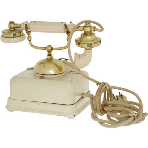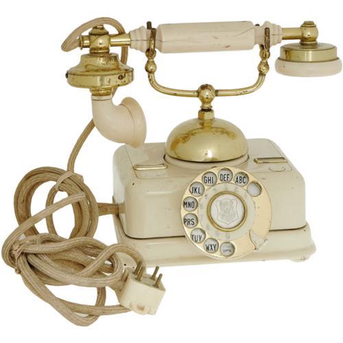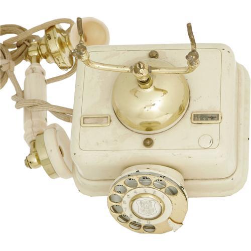 <B>Prop Telephone from "Tony Rome."</B></I> An ivory-and gold tone French-style telephone used as a prop in <I>Tony Rome</B></I> (1967), the first of two movies in which Frank Sinatra played novelist Marvin H. Albert's tough-talking P.I. In Very Fine condition with some mild wear, tarnishing, and a few cracks in the plastic handset.<I>Accompanied by LOA from LA Prop & Wardrobe Company.</B></I><BR><BR><b>Shipping:</b> Miscellaneous Collectibles, Larg (<a target="_blank" href="http://www.heritageauctions.com/common/shipping.php">view shipping information</a>)