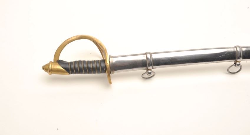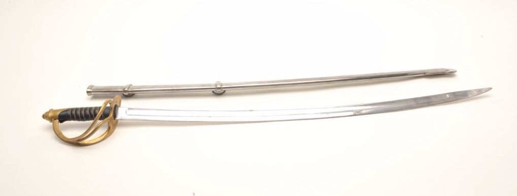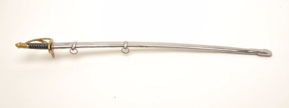 Prop modern reproduction Officer’s Cavalry sword and metal scabbard from the movie “Last Samurai” starring Tom Cruise and attributed to use by him in the feature film. Est.: $300-$600.
