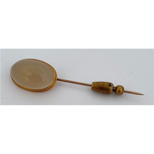 14K Gold White Jade Stick Pin45 - 14K Gold White Jade Stick Pin