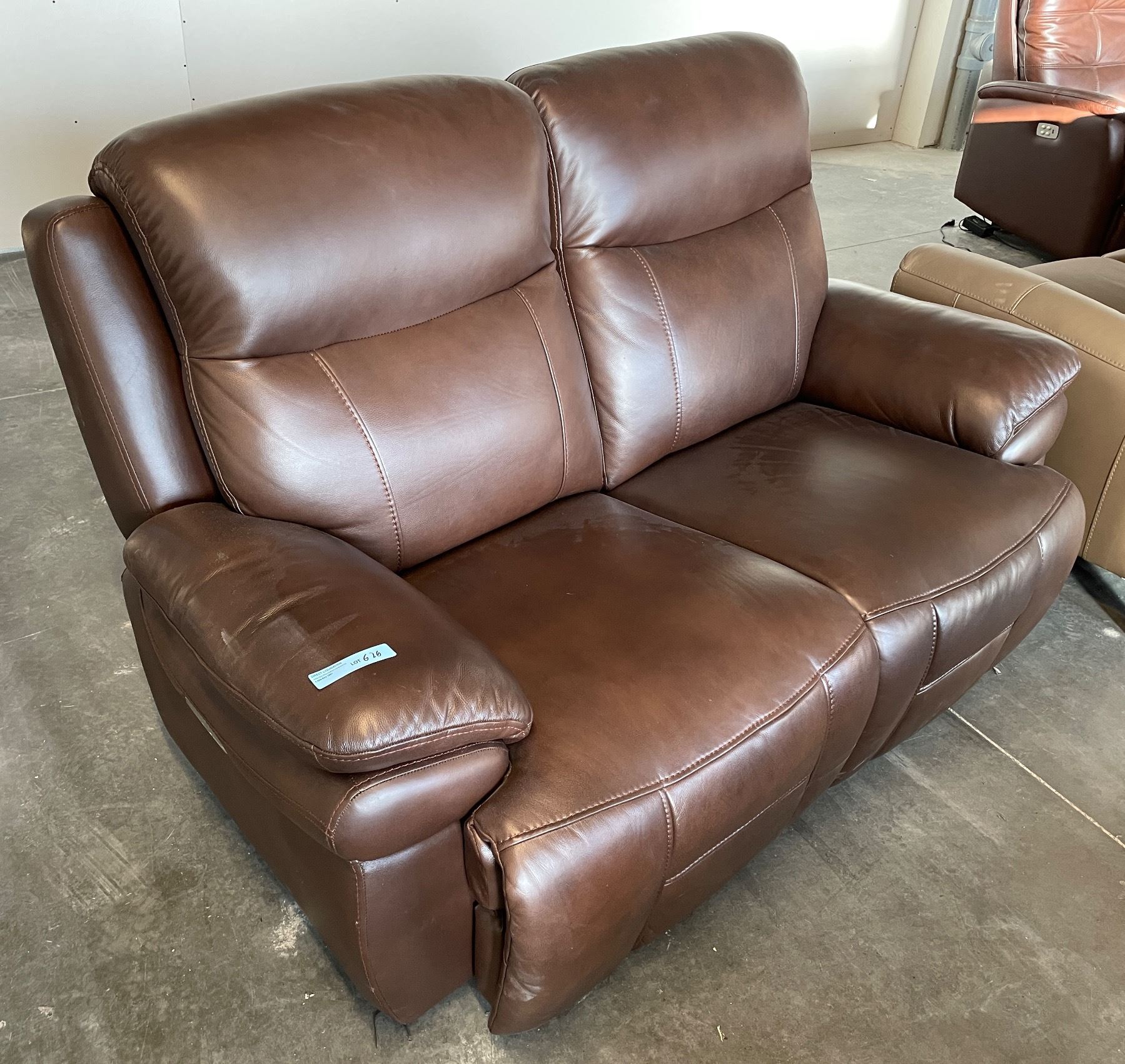 Prospera Home Brown Leather Double Seater Powered Reclining Sofa