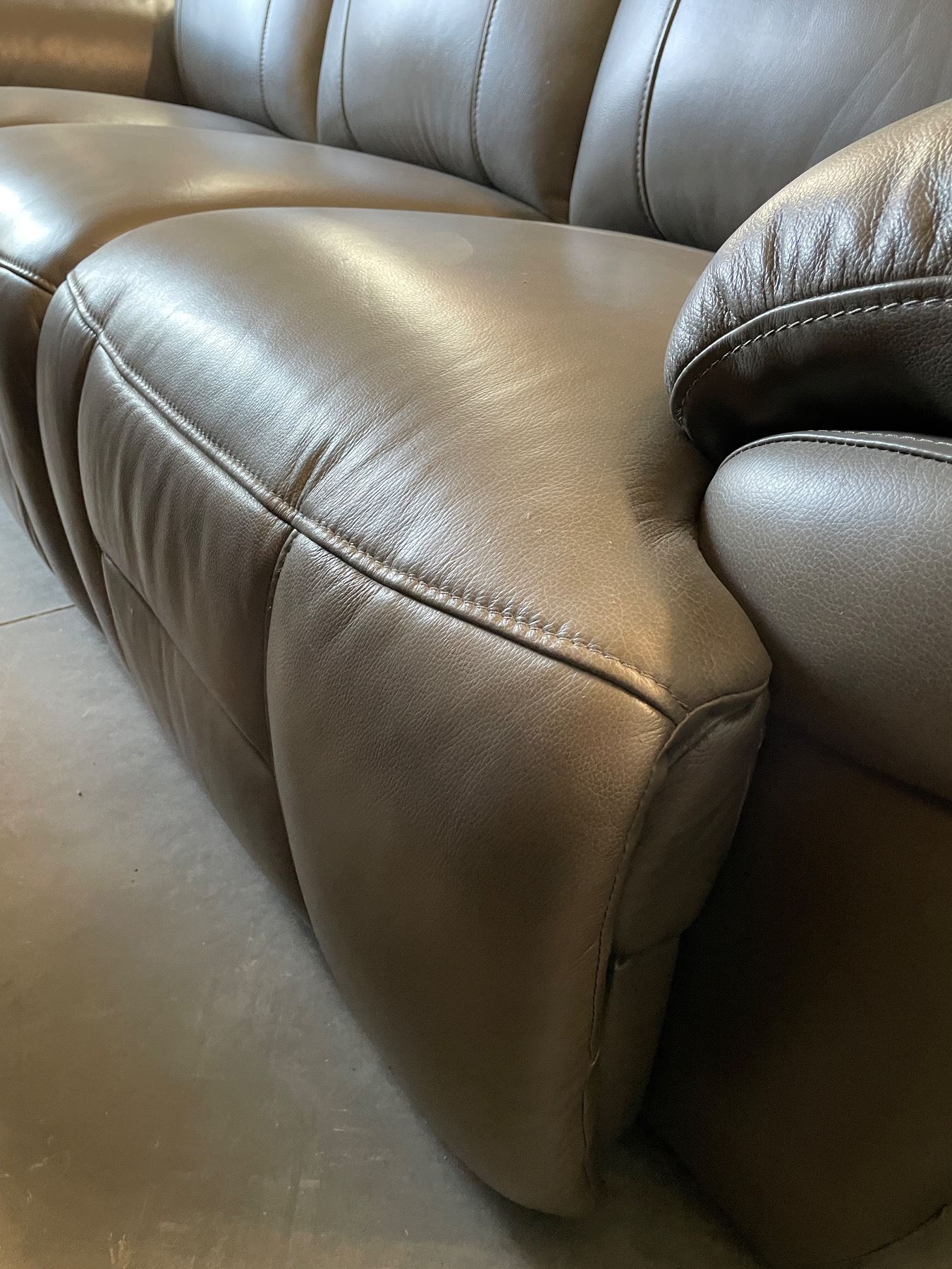 Prospera Home Dark Grey Leather Triple-Seat Power Reclining Sofa
