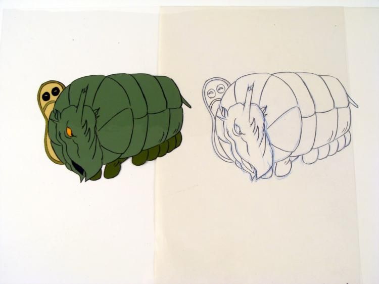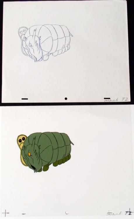 The Herculoids battled to defend their planet from menaces on Amzot/Quasar and from outer space. All of the Herculoids displayed Human-level intelligence - employing precision teamwork and complex tactics - as well as emotions, and Zandor and Tara both * displayed a working knowledge of complex alien technologies as well as the ability to pilot interstellar spacecraft—but essentially, Zandor, Tara, Dorno, and the Herculoids were fighting to keep Amzot/Quasar a technology-free, primitive planet. This is further * indicated by the pseudo-barbarian outfits of Zandor, Tara, and Dorno and the fact that technology was used mainly by the various villains, but rarely if ever by the heroes. Although the "speech" of their companions was limited and repetitive, Zandor, Tara * and Dorno demonstrated that Gloop and Gleep, at least, had a comprehensive mode of communication, and that they could at least understand and interpret this language. * * * * **The cel and drawing are at least 35 years old. * * * * Don't worry Gloop/Gleep, whoever you are, I will protect you... * * * Original Animation and Drawing * * Original "rough" animation drawing, in black pencil and non-photo blue pencil with the notations in black. * * * Overall Size of Drawing: 10 1/2" x 12 1/2" * Overall Size of the Cel: 10 1/2" x 12 1/2" * Excellent condition * This is an original hand-painted cel set-up used in the production of an episode of "Herculoids." Each one-of-a-kind set-up represents a slight change in position of the characters. When individually photographed and projected in rapid succession, the images * appear to move. * * To create production cels, the original animator's drawing is transferred onto an acetate cel (by hand-inking and/or photo copying). The cel is then hand-painted on the reverse side. * * The drawing and cel are ready to be matted and framed. The notations are located at the bottom of the drawing and cel. * *