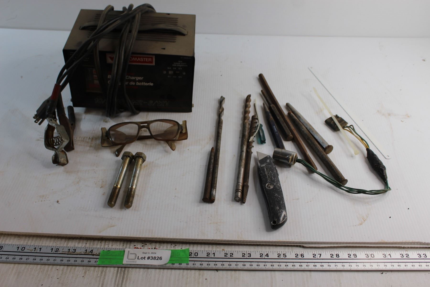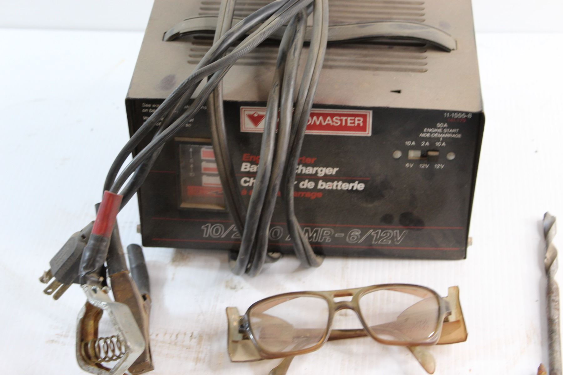Protection Glasses, Motomaster Engine Starter and Battery Charger and Assorted Hardware