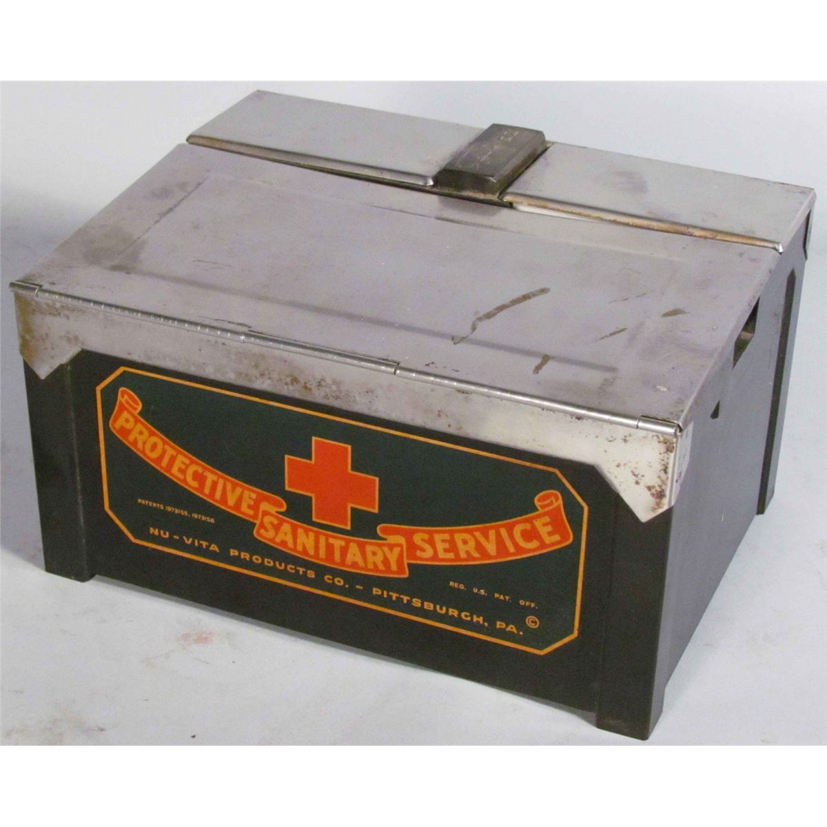 Protective Sanitary Service Barber Shop Sanitizer. Complete with inserts. Very good condition. 8 3/4 X 4 1/2 X 6 inches.