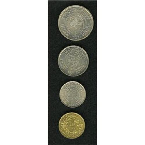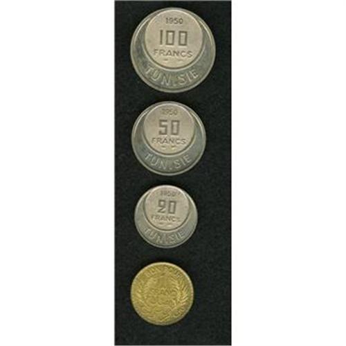 <B>Protectorate Essai Quartet, </B></I>KM-PE3 Piefort Franc 1945, nice UNC, very scarce with only 104 minted, plus 20, 50 and 100 Francs 1950 Essais, KM-E28-30, UNC with a few tiny spots, scarce type, and underrated in the SCWC.