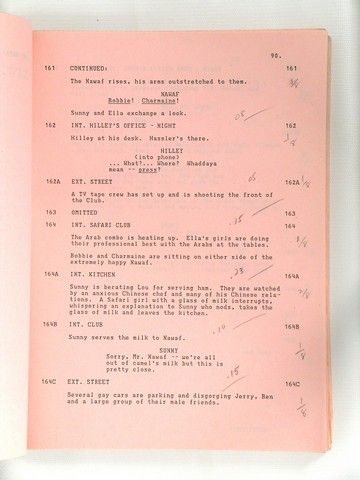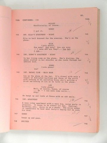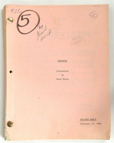 In the late 1970's and early 1980's, Oscar winner Goldie Hawn was riding high with a series of smash hit comedies. From 1984 came her version of "Mr. Smith Goes To Washington", with the highly acclaimed political comedy "Protocol". This is a rare original production shooting script (dated February 14th, 1984). It is from the personal collection of the film's Script Supervisor, the legendary Esther Vivante. This was her script, which she used before and during production as a "timing" script. Before production, the Script Supervisor goes through the script scene by scene, and then times each scene to give the production an idea of just how long each scene is going to be, which also gives them an idea of how long the completed film will be. This allows for changes and adjustments before the costly production starts. Timing Scripts are usually turned into the editorial department, so they are extremely rare. Also included is a Letter of Provenance from a family member.