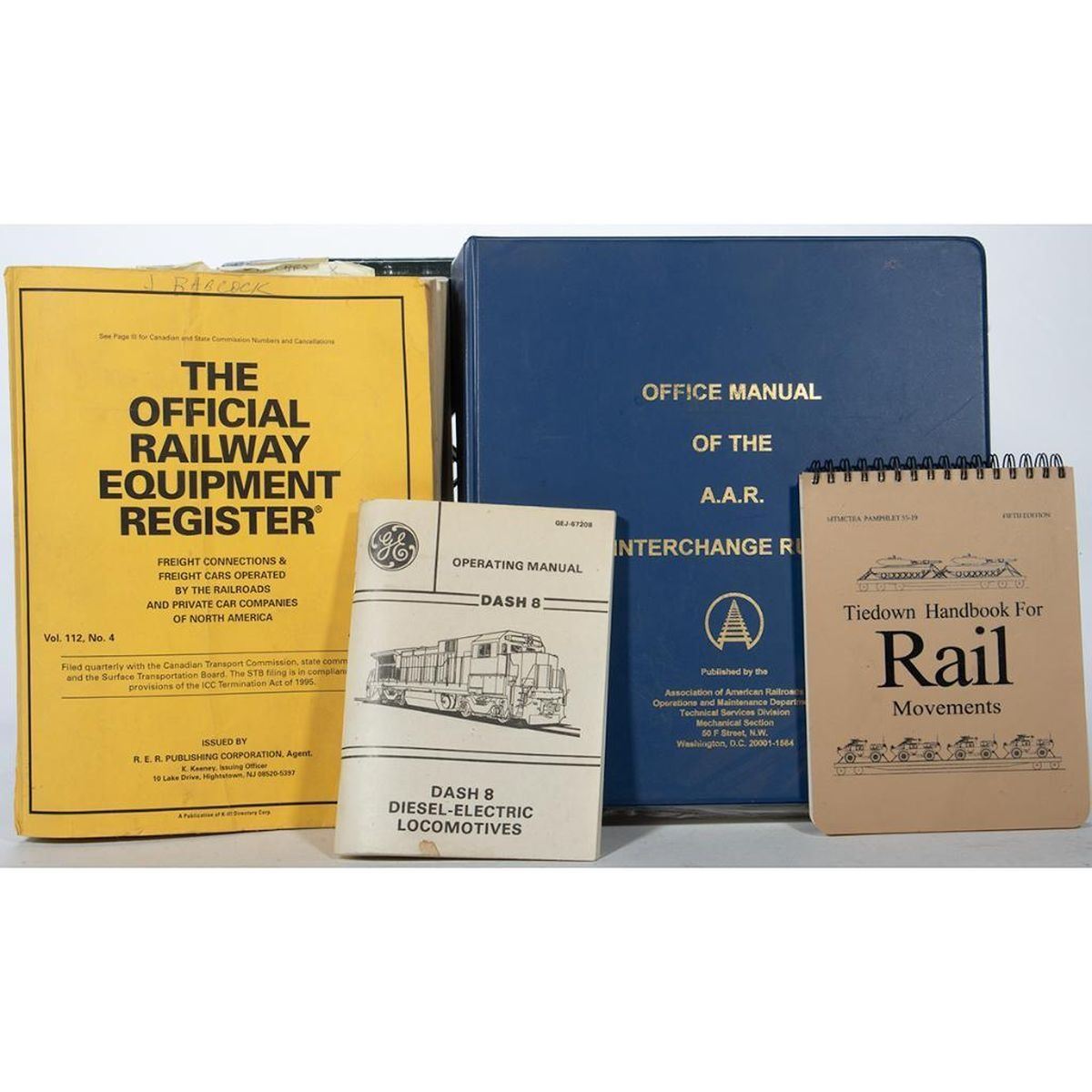 Prototype Railroad ManualsThe Official Railway Equipment Register Volume 112 No 4 April 1997 - used Prototype Railroad ManualsOffice Manual of the A. A. R. Interchange Rules - dusty Prototype Railroad ManualsDash 8 Disel-Electric Locomotives : Operating Manual - used Prototype Railroad ManualsTiedown Handbook for Rail Movements : Fifth Edition : Pamphlet