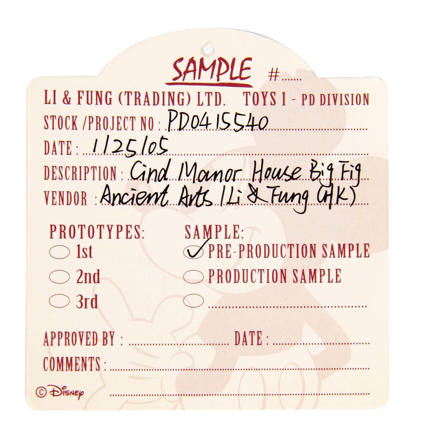 (Disneyland, 2005) An original prototype for Imagineer Larry Nikolai's Tremaine Manor "Magical Big Figurine." This figure was offered through Disneyland and beautifully depicts this iconic location. This is Nikolai's production sample, and as such, small details may be slightly different from the finalized version. A Disney prototype tag is included with project information listed. From the collection of Nikolai himself, the figure measures approximately 14"x15" and 14" tall. The condition is very fine.