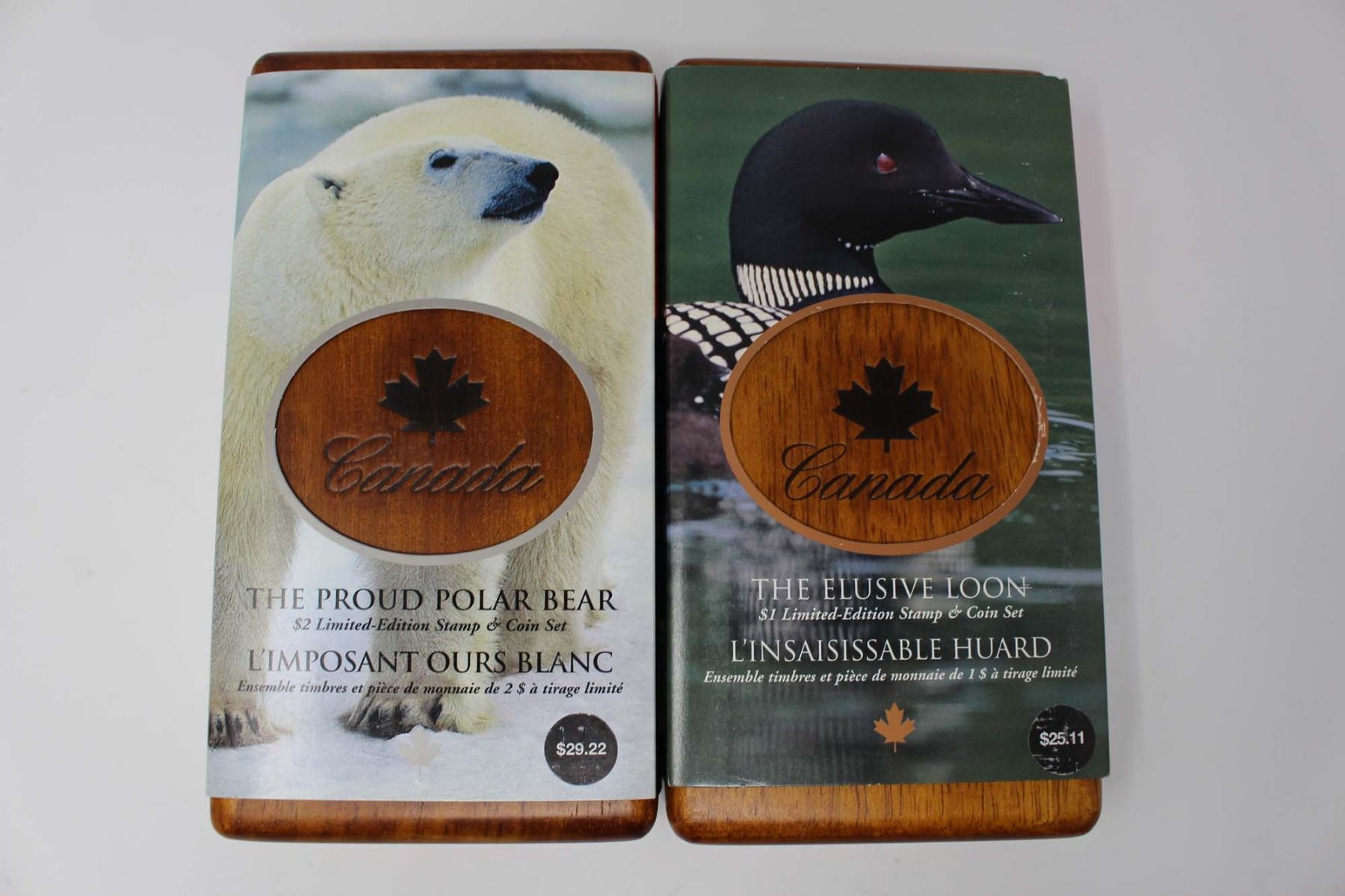 Proud Polar Bear, $2 & Elusive Loon, $1 Limited- Edition Canadian Stamp and Coin Sets