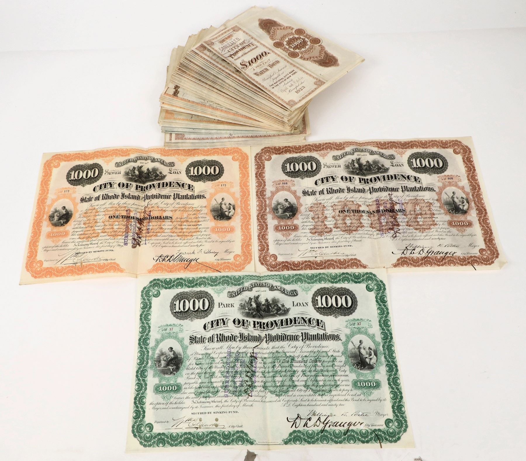 About 110 Providence, Rhode Island water, sewer, park and highway bonds from 1916-1924. 6 different varieties. See Photo.