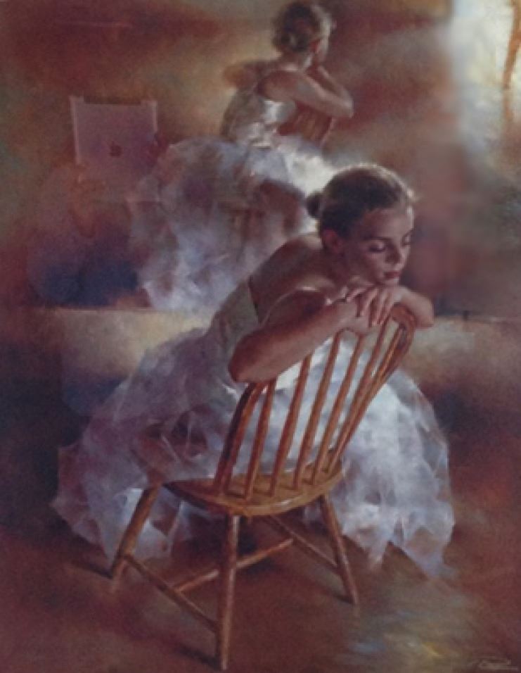 No one captures the human figure - especially hands abnd feet , they way San Francisco artist Stephen Pan can do . His ability to draw and to capture emotion in the faces of his subjects is a rare and beasutiful talent . This giclee on heavy arches paper , is among his finest portraits of a young ballerina , contemplating her next performance . 27x20" Giclee on Paper
