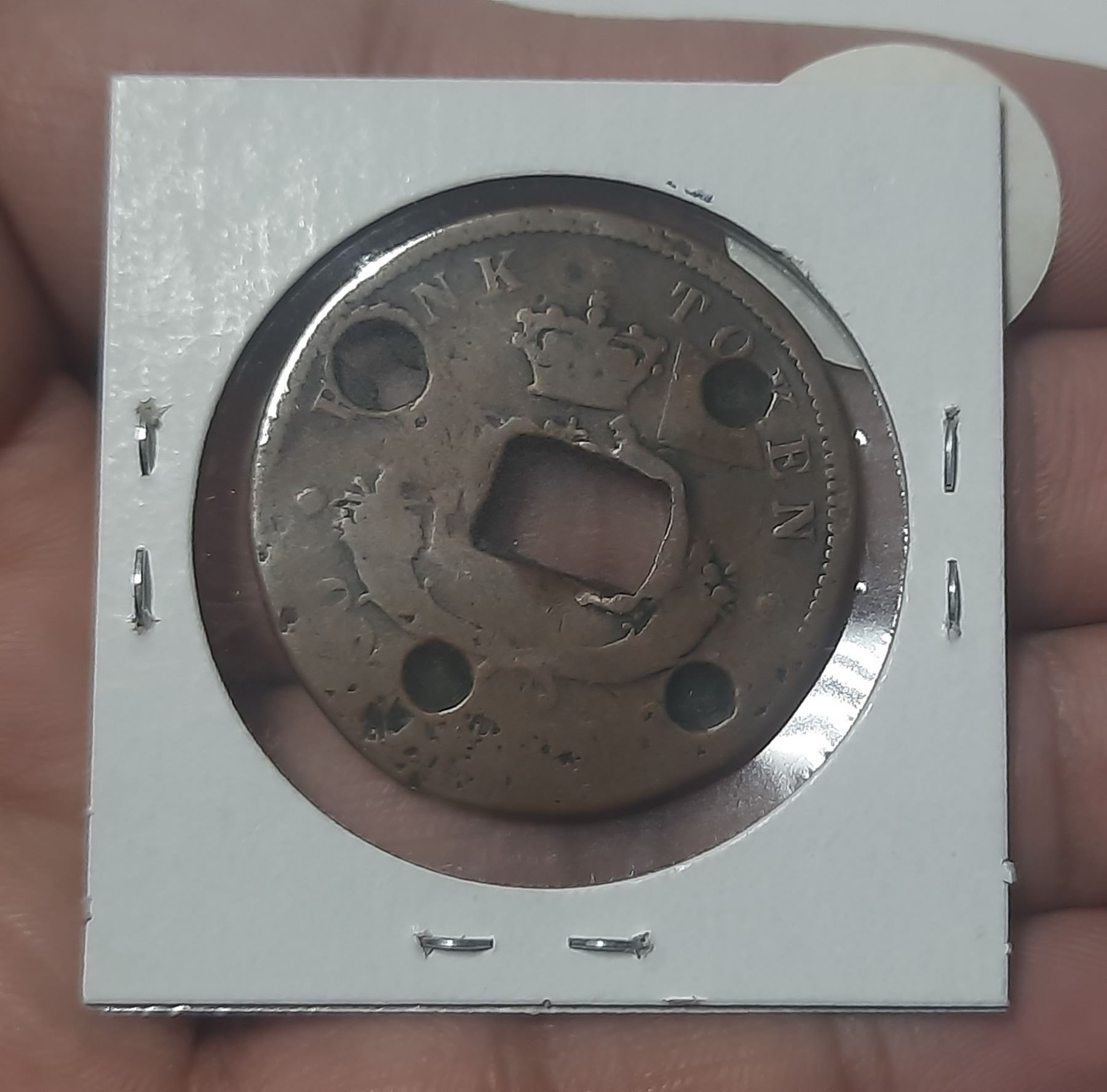Province of Canada 1852 Penny. Bank of Upper Canada. Holed.