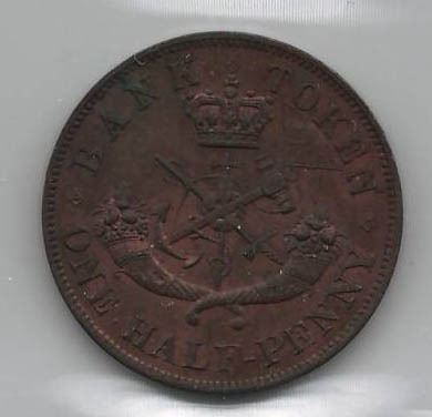 Province of Canada, Bank of Upper Canada 1850 1/2 Penny Token Breton 720, CH. PC5A ICCS MS60. Trace Red