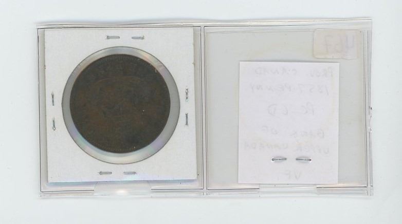 Province of Canada pre-Confederation token: 1857 Bank of Upper Canada penny token. PC-6D. VF-20.