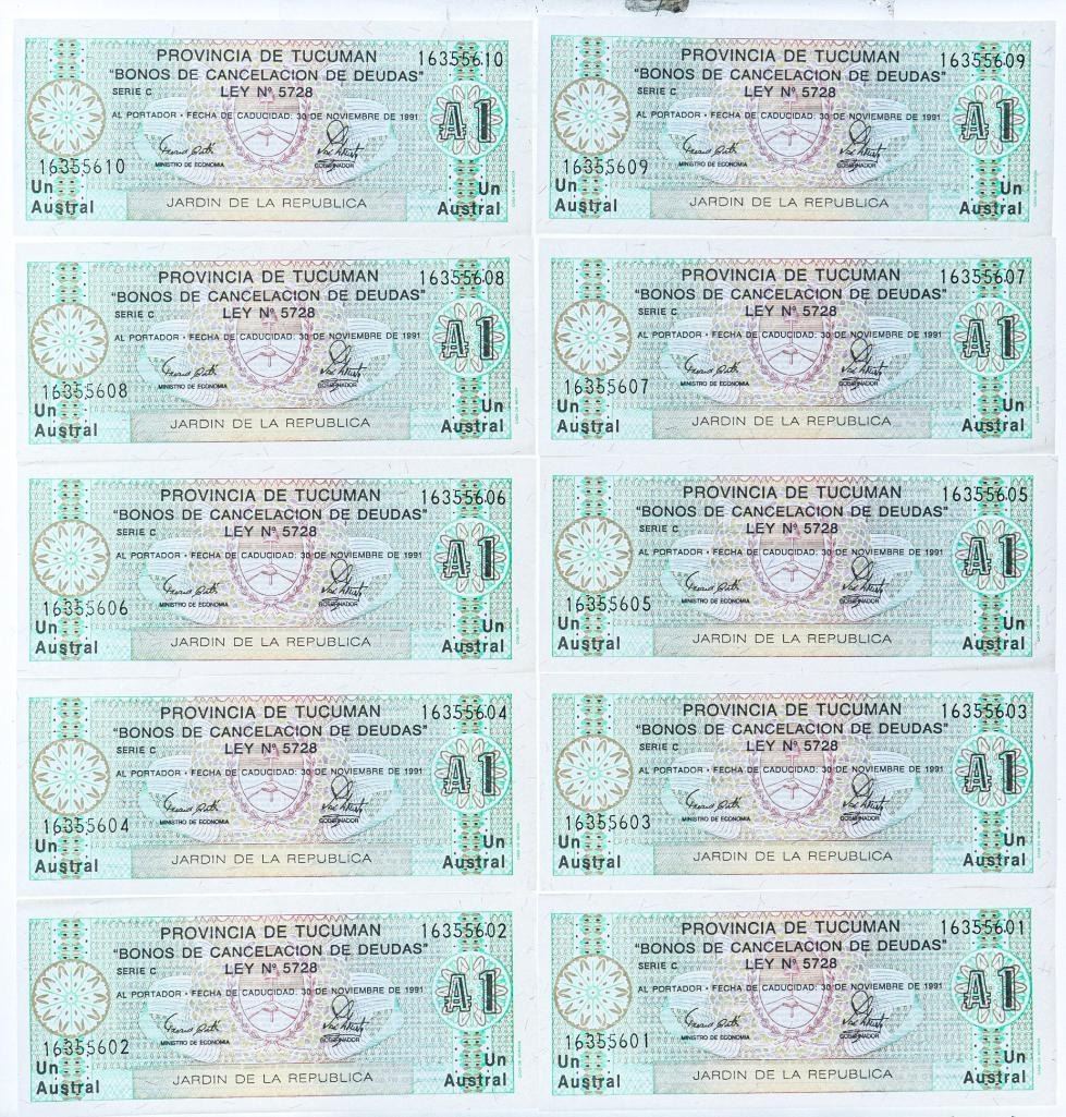 Provincia De Tucuman 1991 - Lot 10 Un Astral in Sequence