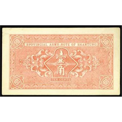 <style type="text/css"> body, td, th { font-family: Arial, Helvetica, sans-serif; font-size: 12px; color: #482424; margin: 0px; padding: 0px; } #header { background-image: url(http://www.bowersandmerena.com/ebay/images/template_v3_01.gif); clear: both; background-color: #590303; border-top-width: 2px; border-top-style: solid; border-top-color: #B38C4F; } #header #header_wrapper { height: 75px; clear: both; width: 800px; margin-right: auto; margin-left: auto; background-image: url(http://www.bowersandmerena.com/ebay/images/template_v3_03.gif); background-repeat: no-repeat; background-position: right; color: #F3EDCC; } #header #header_wrapper #header_logo { float: left; height: 75px; width: 444px; background-image: url(http://www.bowersandmerena.com/ebay/images/template_v3_02.gif); background-repeat: no-repeat; font-size: 10px; text-transform: capitalize; color: #B38C4F; } #header #header_wrapper #header_right { float: left; height: 75px; width: 356px; text-align: right; } #header #header_wrapper #header_right #headerLoginBtn { margin-bottom: 30px; } #header #header_wrapper #header_right input#txtSearch { color: #B49056; border: 1px solid #B49056; width: 175px; padding-top: 3px; padding-right: 3px; padding-bottom: 4px; padding-left: 3px; } #nav { height: 37px; background-image: url(http://www.bowersandmerena.com/ebay/images/template_v3_05.gif); clear: both; } #nav #nav_wrapper { height: 35px; width: 800px; margin-right: auto; margin-left: auto; border-left-width: 1px; border-left-style: solid; border-left-color: #B38C4F; } #nav #nav_wrapper a { padding-right: 15px; padding-left: 15px; border-right-width: 1px; border-right-style: solid; border-right-color: #B38C4F; height: 25px; padding-top: 10px; display: block; float: left; text-decoration: none; font-weight: bold; color: #5D0303; } #nav #nav_wrapper a:hover { color: #B38C4F; } #nav #nav_wrapper #search { float: right; padding-top: 7px; } #nav #nav_wrapper #search #txtSearch { font-family: Arial, Helvetica, sans-serif; font-size: 10px; text-transform: uppercase; color: #D2AE75; border: 1px solid #B38C4F; padding: 3px; } #content_bgd { background-image: url(http://www.bowersandmerena.com/ebay/images/template_v3_09.gif); background-repeat: repeat-y; background-position: center; padding-top: 15px; padding-bottom: 15px; background-color: #FBFBDB; } #content_wrapper { clear: both; height: auto; width: 800px; margin-right: auto; margin-left: auto; } .LotDetailWhite { line-height:normal; font-size:13px; font-family: arial,helvetica,sans-serif; color: White; font-weight: bold; } .LotDetailInformation { line-height:normal; font-size: 13px; font-family: arial,helvetica,sans-serif; } .LotDetailMessage { line-height:normal; font-size: 13px; font-family: arial,helvetica,sans-serif; color: red; } } tr.HeaderAuctionTitle td { color: #000000; font-weight: bold; padding: 2px; background-image: url(http://www.bowersandmerena.com/ebay/images/template_v3_05.gif); background-repeat: repeat-x; border-bottom-width: 1px; border-bottom-style: solid; border-bottom-color: #B38C4F; } table.AuctionSummary a, table.AuctionSummary a:link, table.AuctionSummary a:visited { color: #0000FF; text-decoration: none; } } td.tableHeaderLeft { border-left-width: 1px; border-left-style: solid; border-left-color: #B38C4F; } td.tableHeaderRight { border-right-width: 1px; border-right-style: solid; border-right-color: #B38C4F; } td.tableCellMiddle { border-left-width: 1px; border-left-style: solid; border-left-color: #B38C4F; border-right-width: 1px; border-right-style: solid; border-right-color: #B38C4F; padding: 5px; } tr.footer td { border-top-width: 1px; border-top-style: solid; border-top-color: #B38C4F; } </style> </head> <body> <div id="header"> <div id="header_wrapper"> <div id="header_logo"> </div> <div id="header_right"> </div> </div> </div> <div id="nav"> <div id="nav_wrapper"> <a href="http://www.bowersandmerena.com">Our eBayLive Auctions</a> <a href="#PaymentInfo">Payment Information</a> <a href="#ShippingInfo">Shipping Information</a> <a href="#About">About Bowers and Merena</a> </div> </div> <div id="content_bgd"> <div id="content_wrapper"> <table width="100%" border="0" cellpadding="5" cellspacing="0" class="AuctionSummary"> <tbody> <tr class="HeaderAuctionTitle" style="height: 25px;"> <td align="left" class="tableHeaderLeft" > </td> <td align="center" class="tableHeaderRight"> <span style="font-size: large;">Lot #866. Military Issues. Provincial Army of Shantung, ND Issue.</span> </td> </tr> <tr> <td colspan="3" class="tableCellMiddle"> ND. 10 cents, P-S3931, red, Issued note, Uncirculated condition, premium example worthy of a strong bid.