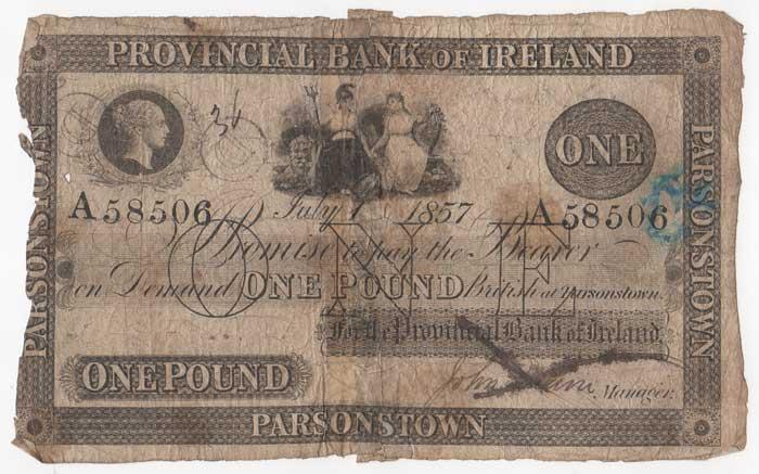 Provincial Bank of Ireland. Parsonstown (now Birr). One Pound. July 1 1857