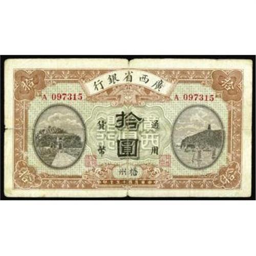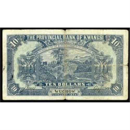 <style type="text/css"> body, td, th { font-family: Arial, Helvetica, sans-serif; font-size: 12px; color: #482424; margin: 0px; padding: 0px; } #header { background-image: url(http://www.bowersandmerena.com/ebay/images/template_v3_01.gif); clear: both; background-color: #590303; border-top-width: 2px; border-top-style: solid; border-top-color: #B38C4F; } #header #header_wrapper { height: 75px; clear: both; width: 800px; margin-right: auto; margin-left: auto; background-image: url(http://www.bowersandmerena.com/ebay/images/template_v3_03.gif); background-repeat: no-repeat; background-position: right; color: #F3EDCC; } #header #header_wrapper #header_logo { float: left; height: 75px; width: 444px; background-image: url(http://www.bowersandmerena.com/ebay/images/template_v3_02.gif); background-repeat: no-repeat; font-size: 10px; text-transform: capitalize; color: #B38C4F; } #header #header_wrapper #header_right { float: left; height: 75px; width: 356px; text-align: right; } #header #header_wrapper #header_right #headerLoginBtn { margin-bottom: 30px; } #header #header_wrapper #header_right input#txtSearch { color: #B49056; border: 1px solid #B49056; width: 175px; padding-top: 3px; padding-right: 3px; padding-bottom: 4px; padding-left: 3px; } #nav { height: 37px; background-image: url(http://www.bowersandmerena.com/ebay/images/template_v3_05.gif); clear: both; } #nav #nav_wrapper { height: 35px; width: 800px; margin-right: auto; margin-left: auto; border-left-width: 1px; border-left-style: solid; border-left-color: #B38C4F; } #nav #nav_wrapper a { padding-right: 15px; padding-left: 15px; border-right-width: 1px; border-right-style: solid; border-right-color: #B38C4F; height: 25px; padding-top: 10px; display: block; float: left; text-decoration: none; font-weight: bold; color: #5D0303; } #nav #nav_wrapper a:hover { color: #B38C4F; } #nav #nav_wrapper #search { float: right; padding-top: 7px; } #nav #nav_wrapper #search #txtSearch { font-family: Arial, Helvetica, sans-serif; font-size: 10px; text-transform: uppercase; color: #D2AE75; border: 1px solid #B38C4F; padding: 3px; } #content_bgd { background-image: url(http://www.bowersandmerena.com/ebay/images/template_v3_09.gif); background-repeat: repeat-y; background-position: center; padding-top: 15px; padding-bottom: 15px; background-color: #FBFBDB; } #content_wrapper { clear: both; height: auto; width: 800px; margin-right: auto; margin-left: auto; } .LotDetailWhite { line-height:normal; font-size:13px; font-family: arial,helvetica,sans-serif; color: White; font-weight: bold; } .LotDetailInformation { line-height:normal; font-size: 13px; font-family: arial,helvetica,sans-serif; } .LotDetailMessage { line-height:normal; font-size: 13px; font-family: arial,helvetica,sans-serif; color: red; } } tr.HeaderAuctionTitle td { color: #000000; font-weight: bold; padding: 2px; background-image: url(http://www.bowersandmerena.com/ebay/images/template_v3_05.gif); background-repeat: repeat-x; border-bottom-width: 1px; border-bottom-style: solid; border-bottom-color: #B38C4F; } table.AuctionSummary a, table.AuctionSummary a:link, table.AuctionSummary a:visited { color: #0000FF; text-decoration: none; } } td.tableHeaderLeft { border-left-width: 1px; border-left-style: solid; border-left-color: #B38C4F; } td.tableHeaderRight { border-right-width: 1px; border-right-style: solid; border-right-color: #B38C4F; } td.tableCellMiddle { border-left-width: 1px; border-left-style: solid; border-left-color: #B38C4F; border-right-width: 1px; border-right-style: solid; border-right-color: #B38C4F; padding: 5px; } tr.footer td { border-top-width: 1px; border-top-style: solid; border-top-color: #B38C4F; } </style> </head> <body> <div id="header"> <div id="header_wrapper"> <div id="header_logo"> </div> <div id="header_right"> </div> </div> </div> <div id="nav"> <div id="nav_wrapper"> <a href="http://www.bowersandmerena.com">Our eBayLive Auctions</a> <a href="#PaymentInfo">Payment Information</a> <a href="#ShippingInfo">Shipping Information</a> <a href="#About">About Bowers and Merena</a> </div> </div> <div id="content_bgd"> <div id="content_wrapper"> <table width="100%" border="0" cellpadding="5" cellspacing="0" class="AuctionSummary"> <tbody> <tr class="HeaderAuctionTitle" style="height: 25px;"> <td align="left" class="tableHeaderLeft" > </td> <td align="center" class="tableHeaderRight"> <span style="font-size: large;">Lot #669. Provincial Banks. Provincial Bank of Kwangsi.</span> </td> </tr> <tr> <td colspan="3" class="tableCellMiddle"> Wuchow, 1926, $10, P-S2327g., VG to VG+ condition.