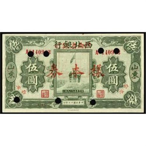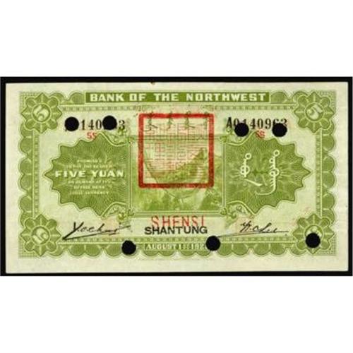 <style type="text/css"> body, td, th { font-family: Arial, Helvetica, sans-serif; font-size: 12px; color: #482424; margin: 0px; padding: 0px; } #header { background-image: url(http://www.bowersandmerena.com/ebay/images/template_v3_01.gif); clear: both; background-color: #590303; border-top-width: 2px; border-top-style: solid; border-top-color: #B38C4F; } #header #header_wrapper { height: 75px; clear: both; width: 800px; margin-right: auto; margin-left: auto; background-image: url(http://www.bowersandmerena.com/ebay/images/template_v3_03.gif); background-repeat: no-repeat; background-position: right; color: #F3EDCC; } #header #header_wrapper #header_logo { float: left; height: 75px; width: 444px; background-image: url(http://www.bowersandmerena.com/ebay/images/template_v3_02.gif); background-repeat: no-repeat; font-size: 10px; text-transform: capitalize; color: #B38C4F; } #header #header_wrapper #header_right { float: left; height: 75px; width: 356px; text-align: right; } #header #header_wrapper #header_right #headerLoginBtn { margin-bottom: 30px; } #header #header_wrapper #header_right input#txtSearch { color: #B49056; border: 1px solid #B49056; width: 175px; padding-top: 3px; padding-right: 3px; padding-bottom: 4px; padding-left: 3px; } #nav { height: 37px; background-image: url(http://www.bowersandmerena.com/ebay/images/template_v3_05.gif); clear: both; } #nav #nav_wrapper { height: 35px; width: 800px; margin-right: auto; margin-left: auto; border-left-width: 1px; border-left-style: solid; border-left-color: #B38C4F; } #nav #nav_wrapper a { padding-right: 15px; padding-left: 15px; border-right-width: 1px; border-right-style: solid; border-right-color: #B38C4F; height: 25px; padding-top: 10px; display: block; float: left; text-decoration: none; font-weight: bold; color: #5D0303; } #nav #nav_wrapper a:hover { color: #B38C4F; } #nav #nav_wrapper #search { float: right; padding-top: 7px; } #nav #nav_wrapper #search #txtSearch { font-family: Arial, Helvetica, sans-serif; font-size: 10px; text-transform: uppercase; color: #D2AE75; border: 1px solid #B38C4F; padding: 3px; } #content_bgd { background-image: url(http://www.bowersandmerena.com/ebay/images/template_v3_09.gif); background-repeat: repeat-y; background-position: center; padding-top: 15px; padding-bottom: 15px; background-color: #FBFBDB; } #content_wrapper { clear: both; height: auto; width: 800px; margin-right: auto; margin-left: auto; } .LotDetailWhite { line-height:normal; font-size:13px; font-family: arial,helvetica,sans-serif; color: White; font-weight: bold; } .LotDetailInformation { line-height:normal; font-size: 13px; font-family: arial,helvetica,sans-serif; } .LotDetailMessage { line-height:normal; font-size: 13px; font-family: arial,helvetica,sans-serif; color: red; } } tr.HeaderAuctionTitle td { color: #000000; font-weight: bold; padding: 2px; background-image: url(http://www.bowersandmerena.com/ebay/images/template_v3_05.gif); background-repeat: repeat-x; border-bottom-width: 1px; border-bottom-style: solid; border-bottom-color: #B38C4F; } table.AuctionSummary a, table.AuctionSummary a:link, table.AuctionSummary a:visited { color: #0000FF; text-decoration: none; } } td.tableHeaderLeft { border-left-width: 1px; border-left-style: solid; border-left-color: #B38C4F; } td.tableHeaderRight { border-right-width: 1px; border-right-style: solid; border-right-color: #B38C4F; } td.tableCellMiddle { border-left-width: 1px; border-left-style: solid; border-left-color: #B38C4F; border-right-width: 1px; border-right-style: solid; border-right-color: #B38C4F; padding: 5px; } tr.footer td { border-top-width: 1px; border-top-style: solid; border-top-color: #B38C4F; } </style> </head> <body> <div id="header"> <div id="header_wrapper"> <div id="header_logo"> </div> <div id="header_right"> </div> </div> </div> <div id="nav"> <div id="nav_wrapper"> <a href="http://www.bowersandmerena.com">Our eBayLive Auctions</a> <a href="#PaymentInfo">Payment Information</a> <a href="#ShippingInfo">Shipping Information</a> <a href="#About">About Bowers and Merena</a> </div> </div> <div id="content_bgd"> <div id="content_wrapper"> <table width="100%" border="0" cellpadding="5" cellspacing="0" class="AuctionSummary"> <tbody> <tr class="HeaderAuctionTitle" style="height: 25px;"> <td align="left" class="tableHeaderLeft" > </td> <td align="center" class="tableHeaderRight"> <span style="font-size: large;">Lot #716. Provincial Banks. Provincial Bank of Shensi, 1930 ND Provisional Issue.</span> </td> </tr> <tr> <td colspan="3" class="tableCellMiddle"> ND (1930-old date 1928), Shensi/Shantung, $5, P-S2682s. Specimen with 3 Chinese characters on face and punch cancelled, XF-XF+ condition.