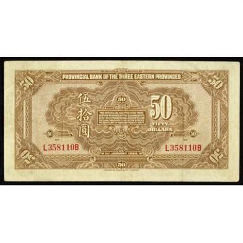 <style type="text/css"> body, td, th { font-family: Arial, Helvetica, sans-serif; font-size: 12px; color: #482424; margin: 0px; padding: 0px; } #header { background-image: url(http://www.bowersandmerena.com/ebay/images/template_v3_01.gif); clear: both; background-color: #590303; border-top-width: 2px; border-top-style: solid; border-top-color: #B38C4F; } #header #header_wrapper { height: 75px; clear: both; width: 800px; margin-right: auto; margin-left: auto; background-image: url(http://www.bowersandmerena.com/ebay/images/template_v3_03.gif); background-repeat: no-repeat; background-position: right; color: #F3EDCC; } #header #header_wrapper #header_logo { float: left; height: 75px; width: 444px; background-image: url(http://www.bowersandmerena.com/ebay/images/template_v3_02.gif); background-repeat: no-repeat; font-size: 10px; text-transform: capitalize; color: #B38C4F; } #header #header_wrapper #header_right { float: left; height: 75px; width: 356px; text-align: right; } #header #header_wrapper #header_right #headerLoginBtn { margin-bottom: 30px; } #header #header_wrapper #header_right input#txtSearch { color: #B49056; border: 1px solid #B49056; width: 175px; padding-top: 3px; padding-right: 3px; padding-bottom: 4px; padding-left: 3px; } #nav { height: 37px; background-image: url(http://www.bowersandmerena.com/ebay/images/template_v3_05.gif); clear: both; } #nav #nav_wrapper { height: 35px; width: 800px; margin-right: auto; margin-left: auto; border-left-width: 1px; border-left-style: solid; border-left-color: #B38C4F; } #nav #nav_wrapper a { padding-right: 15px; padding-left: 15px; border-right-width: 1px; border-right-style: solid; border-right-color: #B38C4F; height: 25px; padding-top: 10px; display: block; float: left; text-decoration: none; font-weight: bold; color: #5D0303; } #nav #nav_wrapper a:hover { color: #B38C4F; } #nav #nav_wrapper #search { float: right; padding-top: 7px; } #nav #nav_wrapper #search #txtSearch { font-family: Arial, Helvetica, sans-serif; font-size: 10px; text-transform: uppercase; color: #D2AE75; border: 1px solid #B38C4F; padding: 3px; } #content_bgd { background-image: url(http://www.bowersandmerena.com/ebay/images/template_v3_09.gif); background-repeat: repeat-y; background-position: center; padding-top: 15px; padding-bottom: 15px; background-color: #FBFBDB; } #content_wrapper { clear: both; height: auto; width: 800px; margin-right: auto; margin-left: auto; } .LotDetailWhite { line-height:normal; font-size:13px; font-family: arial,helvetica,sans-serif; color: White; font-weight: bold; } .LotDetailInformation { line-height:normal; font-size: 13px; font-family: arial,helvetica,sans-serif; } .LotDetailMessage { line-height:normal; font-size: 13px; font-family: arial,helvetica,sans-serif; color: red; } } tr.HeaderAuctionTitle td { color: #000000; font-weight: bold; padding: 2px; background-image: url(http://www.bowersandmerena.com/ebay/images/template_v3_05.gif); background-repeat: repeat-x; border-bottom-width: 1px; border-bottom-style: solid; border-bottom-color: #B38C4F; } table.AuctionSummary a, table.AuctionSummary a:link, table.AuctionSummary a:visited { color: #0000FF; text-decoration: none; } } td.tableHeaderLeft { border-left-width: 1px; border-left-style: solid; border-left-color: #B38C4F; } td.tableHeaderRight { border-right-width: 1px; border-right-style: solid; border-right-color: #B38C4F; } td.tableCellMiddle { border-left-width: 1px; border-left-style: solid; border-left-color: #B38C4F; border-right-width: 1px; border-right-style: solid; border-right-color: #B38C4F; padding: 5px; } tr.footer td { border-top-width: 1px; border-top-style: solid; border-top-color: #B38C4F; } </style> </head> <body> <div id="header"> <div id="header_wrapper"> <div id="header_logo"> </div> <div id="header_right"> </div> </div> </div> <div id="nav"> <div id="nav_wrapper"> <a href="http://www.bowersandmerena.com">Our eBayLive Auctions</a> <a href="#PaymentInfo">Payment Information</a> <a href="#ShippingInfo">Shipping Information</a> <a href="#About">About Bowers and Merena</a> </div> </div> <div id="content_bgd"> <div id="content_wrapper"> <table width="100%" border="0" cellpadding="5" cellspacing="0" class="AuctionSummary"> <tbody> <tr class="HeaderAuctionTitle" style="height: 25px;"> <td align="left" class="tableHeaderLeft" > </td> <td align="center" class="tableHeaderRight"> <span style="font-size: large;">Lot #756. Provincial Banks. Provincial Bank of the Three Eastern Provinces.</span> </td> </tr> <tr> <td colspan="3" class="tableCellMiddle"> 1924 Issue. $50, P-S2954., crisp paper, XF+ condition, green face, brown back, exceptional grade for this high denomination note, ABNC.