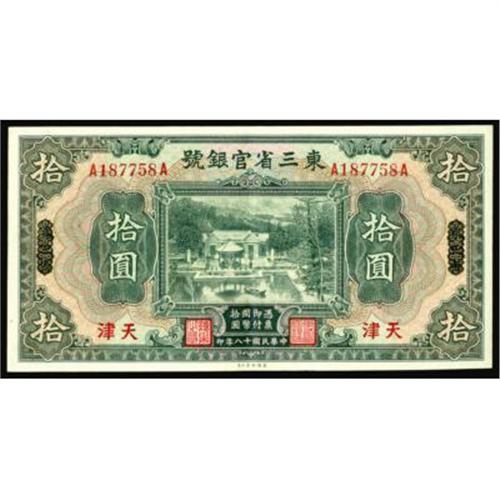 <style type="text/css"> body, td, th { font-family: Arial, Helvetica, sans-serif; font-size: 12px; color: #482424; margin: 0px; padding: 0px; } #header { background-image: url(http://www.bowersandmerena.com/ebay/images/template_v3_01.gif); clear: both; background-color: #590303; border-top-width: 2px; border-top-style: solid; border-top-color: #B38C4F; } #header #header_wrapper { height: 75px; clear: both; width: 800px; margin-right: auto; margin-left: auto; background-image: url(http://www.bowersandmerena.com/ebay/images/template_v3_03.gif); background-repeat: no-repeat; background-position: right; color: #F3EDCC; } #header #header_wrapper #header_logo { float: left; height: 75px; width: 444px; background-image: url(http://www.bowersandmerena.com/ebay/images/template_v3_02.gif); background-repeat: no-repeat; font-size: 10px; text-transform: capitalize; color: #B38C4F; } #header #header_wrapper #header_right { float: left; height: 75px; width: 356px; text-align: right; } #header #header_wrapper #header_right #headerLoginBtn { margin-bottom: 30px; } #header #header_wrapper #header_right input#txtSearch { color: #B49056; border: 1px solid #B49056; width: 175px; padding-top: 3px; padding-right: 3px; padding-bottom: 4px; padding-left: 3px; } #nav { height: 37px; background-image: url(http://www.bowersandmerena.com/ebay/images/template_v3_05.gif); clear: both; } #nav #nav_wrapper { height: 35px; width: 800px; margin-right: auto; margin-left: auto; border-left-width: 1px; border-left-style: solid; border-left-color: #B38C4F; } #nav #nav_wrapper a { padding-right: 15px; padding-left: 15px; border-right-width: 1px; border-right-style: solid; border-right-color: #B38C4F; height: 25px; padding-top: 10px; display: block; float: left; text-decoration: none; font-weight: bold; color: #5D0303; } #nav #nav_wrapper a:hover { color: #B38C4F; } #nav #nav_wrapper #search { float: right; padding-top: 7px; } #nav #nav_wrapper #search #txtSearch { font-family: Arial, Helvetica, sans-serif; font-size: 10px; text-transform: uppercase; color: #D2AE75; border: 1px solid #B38C4F; padding: 3px; } #content_bgd { background-image: url(http://www.bowersandmerena.com/ebay/images/template_v3_09.gif); background-repeat: repeat-y; background-position: center; padding-top: 15px; padding-bottom: 15px; background-color: #FBFBDB; } #content_wrapper { clear: both; height: auto; width: 800px; margin-right: auto; margin-left: auto; } .LotDetailWhite { line-height:normal; font-size:13px; font-family: arial,helvetica,sans-serif; color: White; font-weight: bold; } .LotDetailInformation { line-height:normal; font-size: 13px; font-family: arial,helvetica,sans-serif; } .LotDetailMessage { line-height:normal; font-size: 13px; font-family: arial,helvetica,sans-serif; color: red; } } tr.HeaderAuctionTitle td { color: #000000; font-weight: bold; padding: 2px; background-image: url(http://www.bowersandmerena.com/ebay/images/template_v3_05.gif); background-repeat: repeat-x; border-bottom-width: 1px; border-bottom-style: solid; border-bottom-color: #B38C4F; } table.AuctionSummary a, table.AuctionSummary a:link, table.AuctionSummary a:visited { color: #0000FF; text-decoration: none; } } td.tableHeaderLeft { border-left-width: 1px; border-left-style: solid; border-left-color: #B38C4F; } td.tableHeaderRight { border-right-width: 1px; border-right-style: solid; border-right-color: #B38C4F; } td.tableCellMiddle { border-left-width: 1px; border-left-style: solid; border-left-color: #B38C4F; border-right-width: 1px; border-right-style: solid; border-right-color: #B38C4F; padding: 5px; } tr.footer td { border-top-width: 1px; border-top-style: solid; border-top-color: #B38C4F; } </style> </head> <body> <div id="header"> <div id="header_wrapper"> <div id="header_logo"> </div> <div id="header_right"> </div> </div> </div> <div id="nav"> <div id="nav_wrapper"> <a href="http://www.bowersandmerena.com">Our eBayLive Auctions</a> <a href="#PaymentInfo">Payment Information</a> <a href="#ShippingInfo">Shipping Information</a> <a href="#About">About Bowers and Merena</a> </div> </div> <div id="content_bgd"> <div id="content_wrapper"> <table width="100%" border="0" cellpadding="5" cellspacing="0" class="AuctionSummary"> <tbody> <tr class="HeaderAuctionTitle" style="height: 25px;"> <td align="left" class="tableHeaderLeft" > </td> <td align="center" class="tableHeaderRight"> <span style="font-size: large;">Lot #761. Provincial Banks. Provincial Bank of the Three Eastern Provinces.</span> </td> </tr> <tr> <td colspan="3" class="tableCellMiddle"> 1929 Issue, Tientsin. 10 Yuan, P-S2964b., AU+ condition with extremely light fold down center that is barely visible, scarce note in this condition.