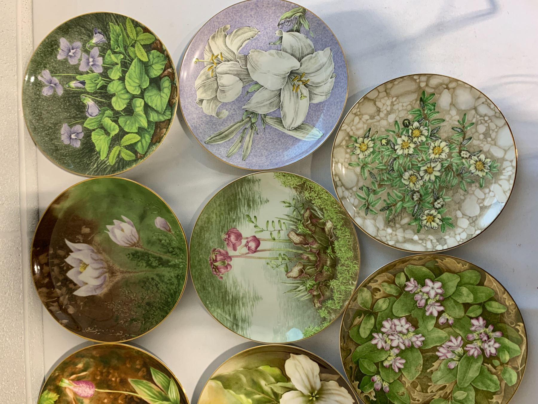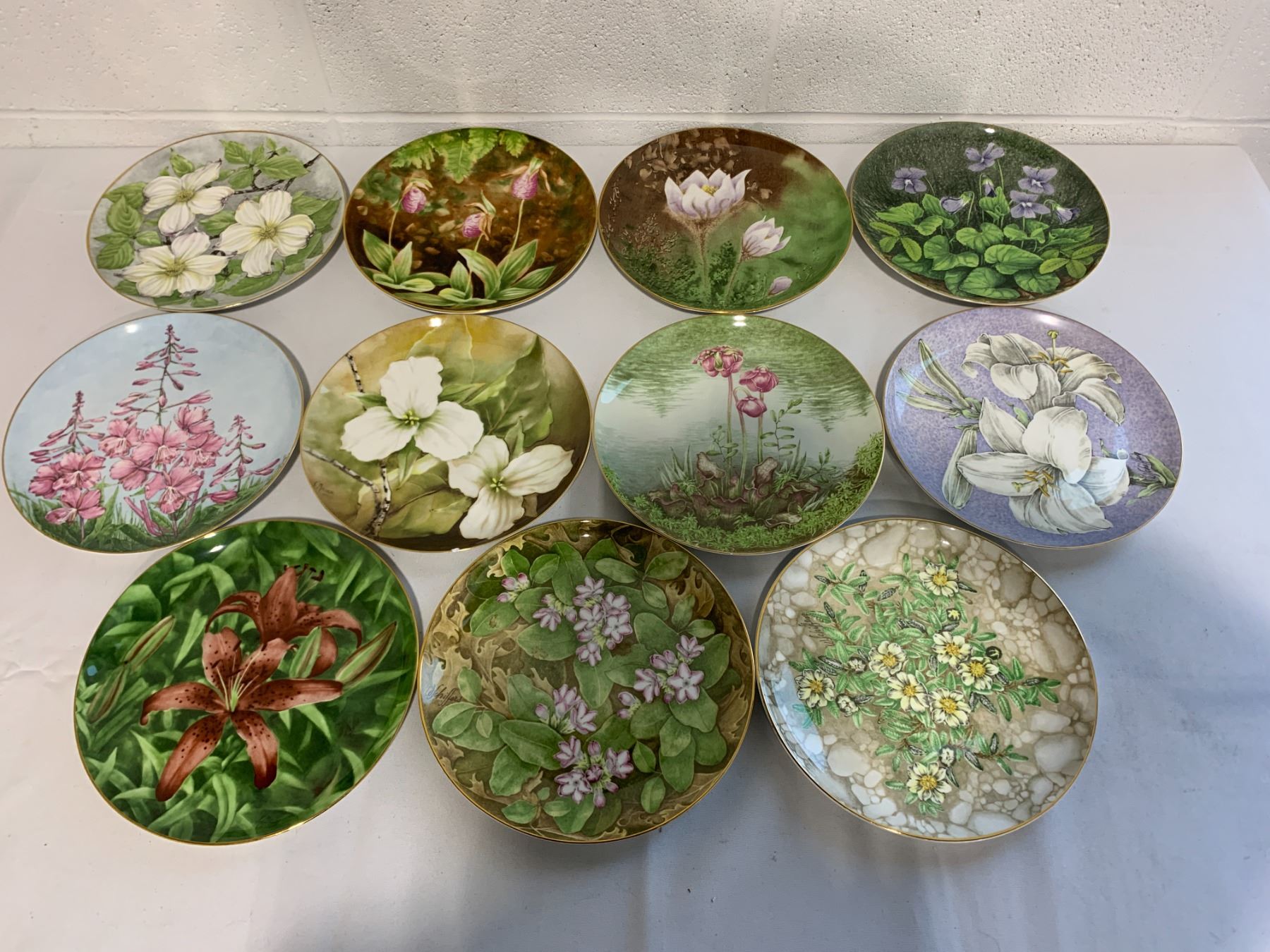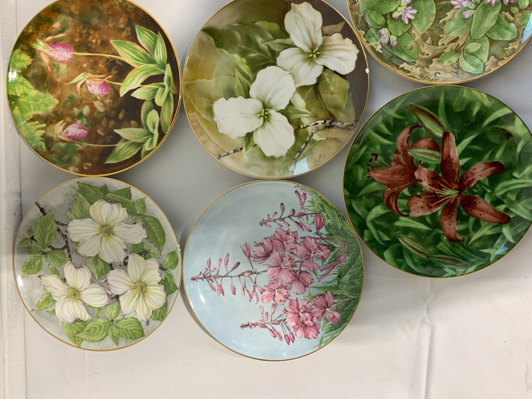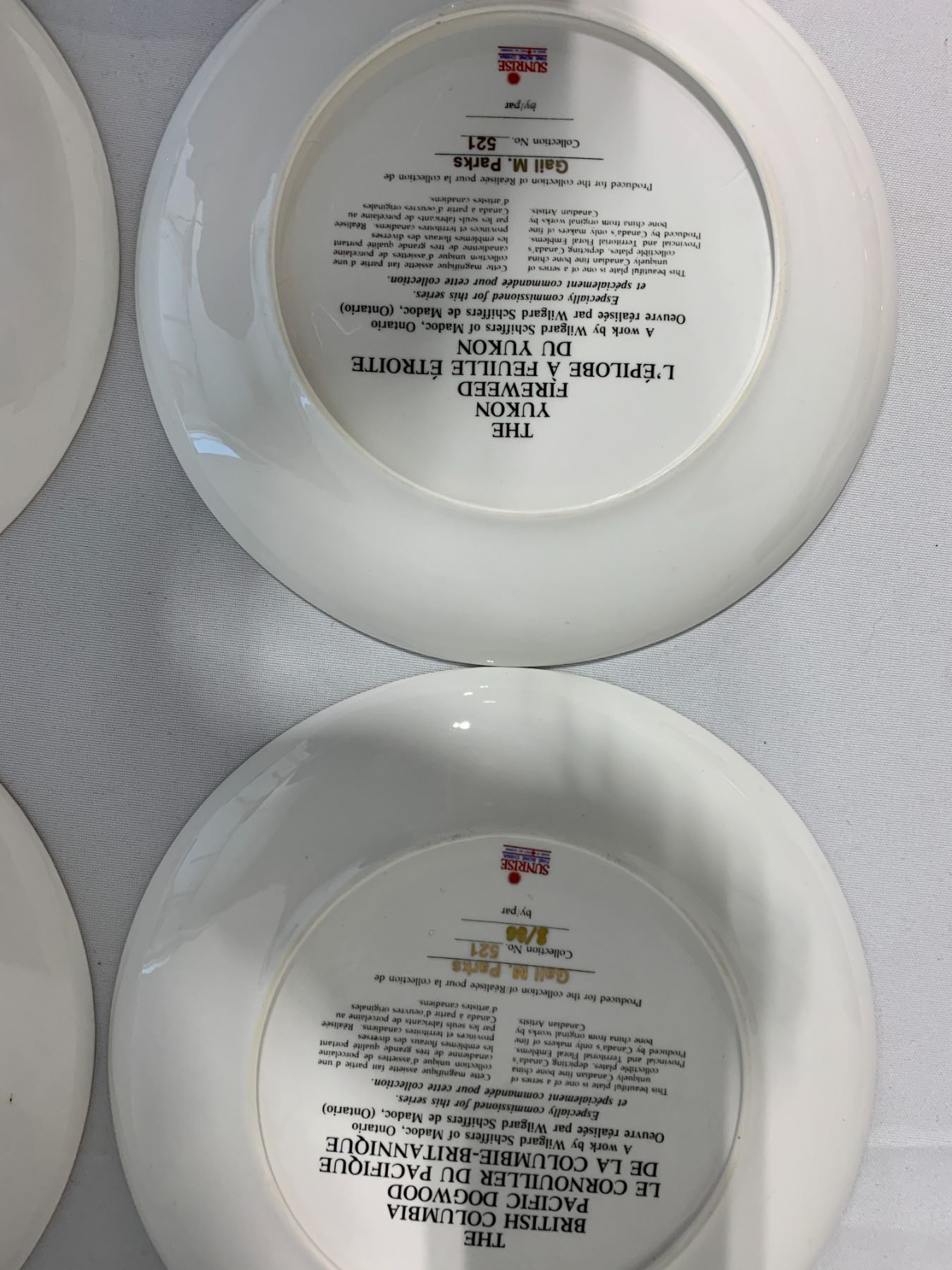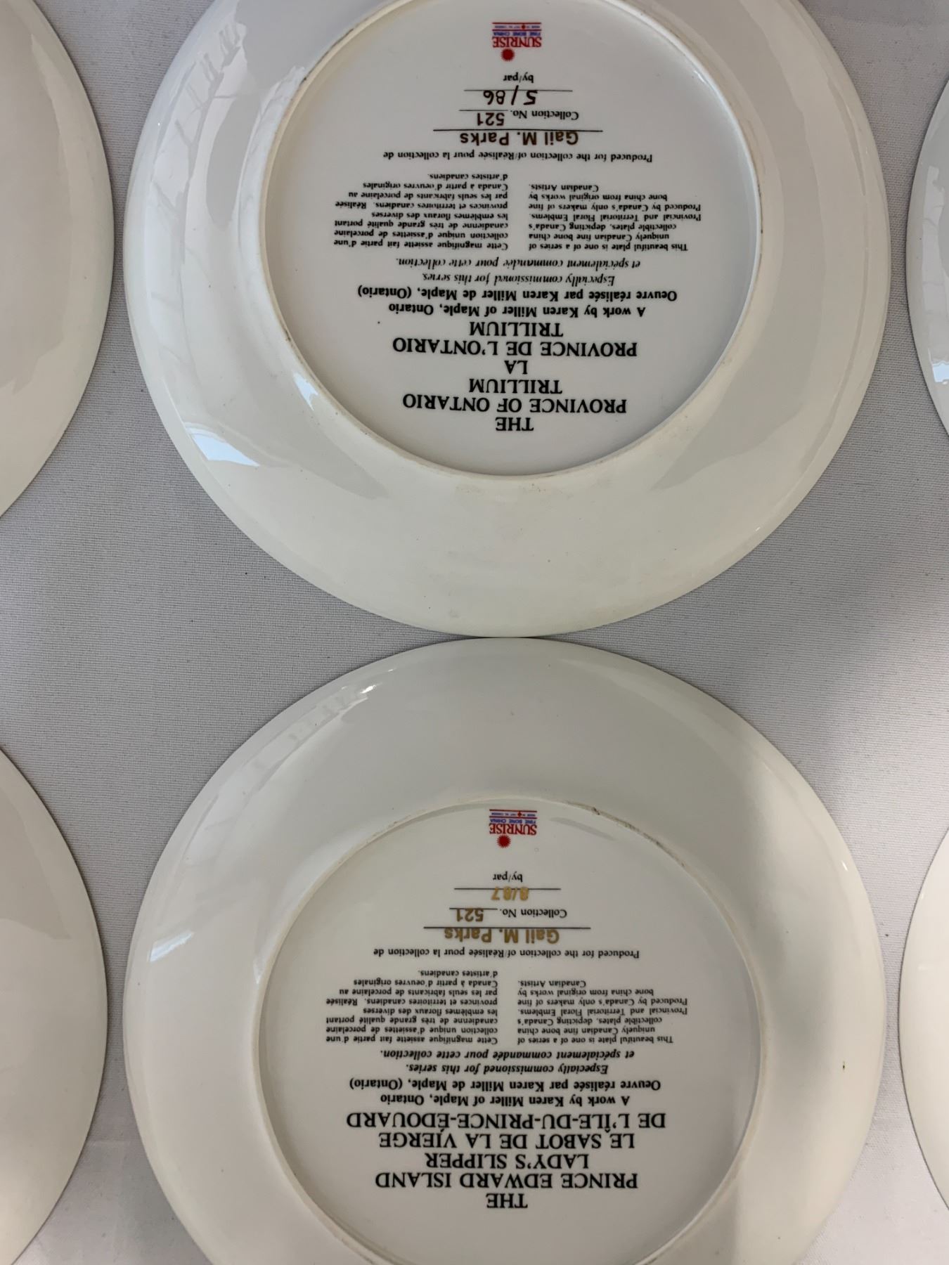 11 Plates by, Gail M. Parks, Sunrise Fine Bone China, Ontario has a chip