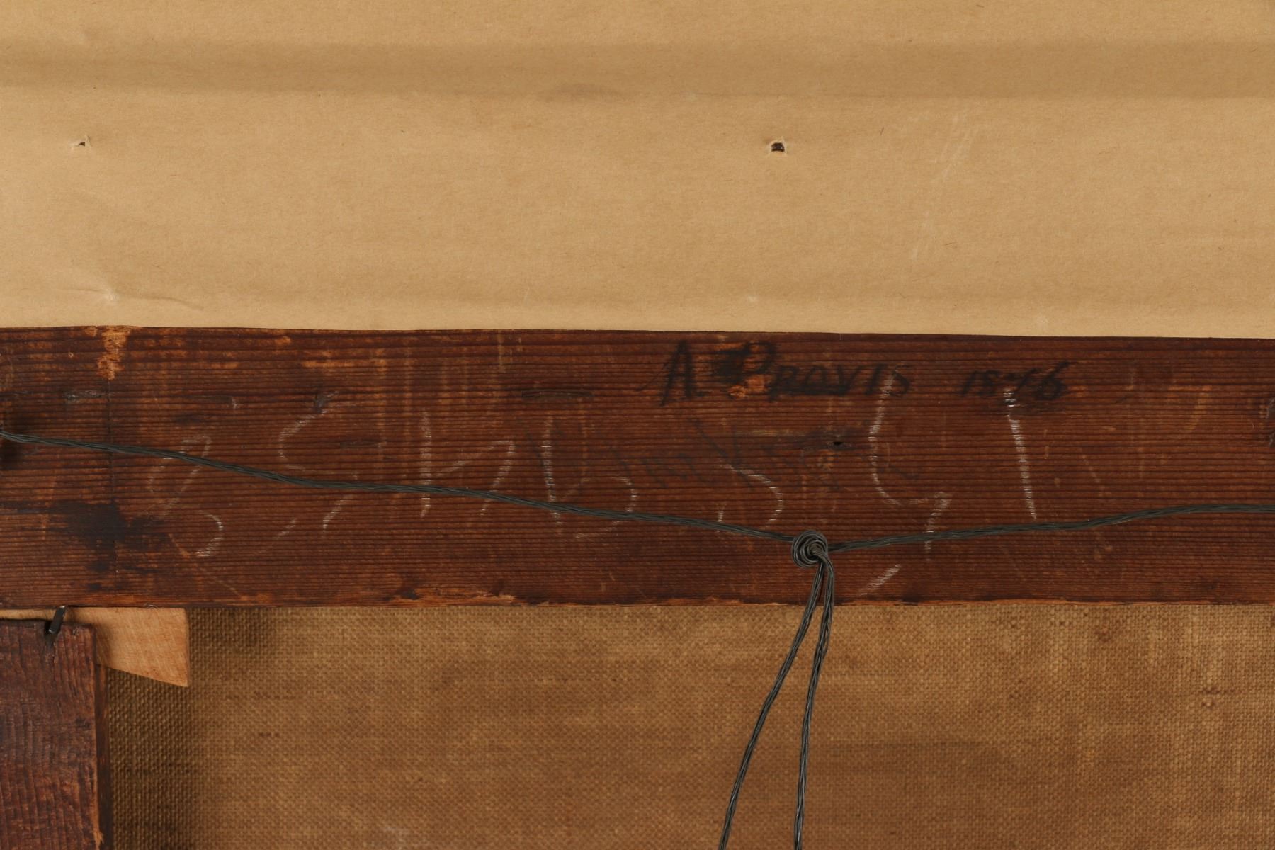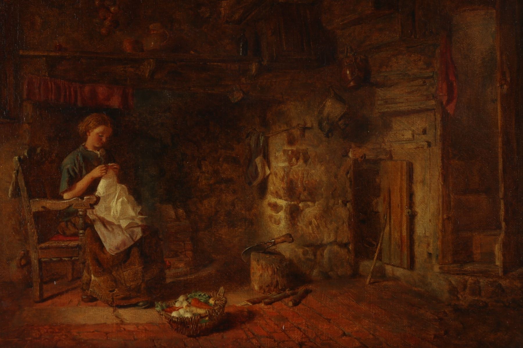 Cottage interior. Oil-on-canvas. Signed and dated "1876" lower right and verso. 14" x 10"