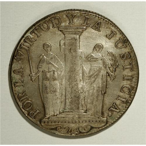 <B>Provisional Republic 8 Reales 1823-JP, </B></I>KM136, nicely toned VF, evenly worn and quite attractive.<BR><BR><b>Shipping:</b> Coin/Currency (<a target="_blank" href="http://www.heritageauctions.com/common/shipping.php">view shipping information</a>)
