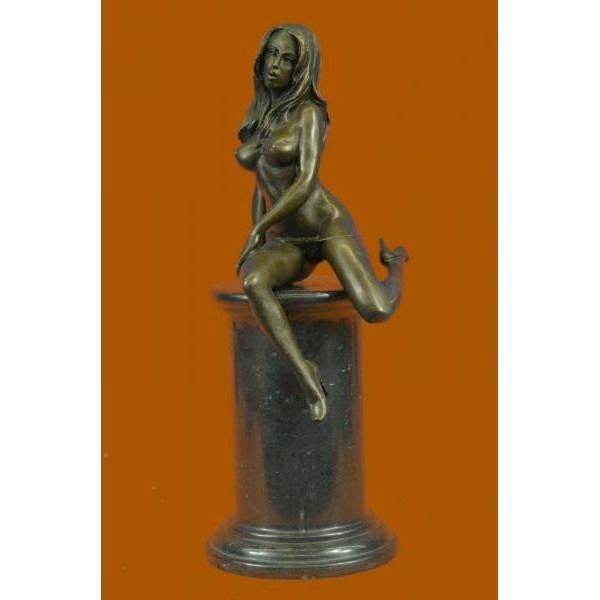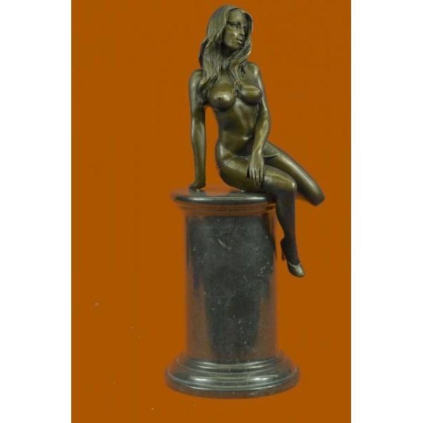 This pose of a peaceful girl sitting with downcast eyes captures the true rebirth of the innocence age. The artist was able to depict elegant nudity that even supersedes the renaissance time. Sitting on a fine marble base, this work of art is superbly created by renowned sculpture. This unique piece was crafted using the lost wax method and the sculpture stands on a black marble base. Size: Height 12 X Width 6 inches. Weight: 8 lbs.Please Note: This is a reproduction bronze sculpture from the original molded and signed. This featured bronze sculpture is a recast after the original, and has been done recently. This 100% bronze sculpture is an abstract piece certain to be a conversation piece.Please Note: This is a reproduction bronze sculpture from the original molded and signed. This featured bronze sculpture is a recast after the original, and has been done recently. This 100% bronze sculpture is an abstract piece certain to be a conversation piece.