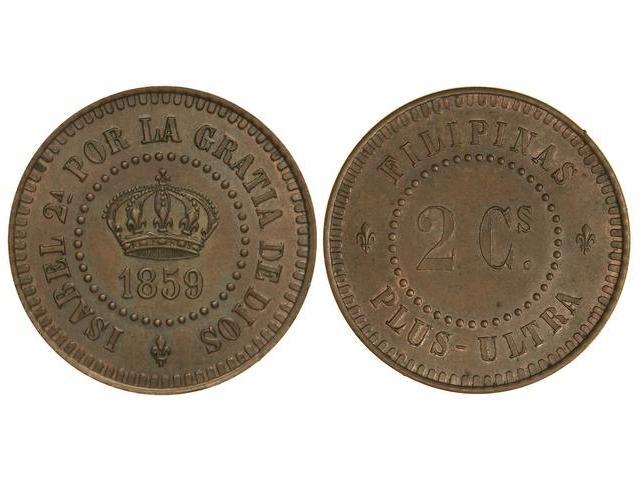 Prueba 2 Centavos. - 1859. - MANILA. - AE. Prueba con el año 1859, se acuñó probablemente en Bruselas en fecha posterior. RARA. Cal-801. SC. - -