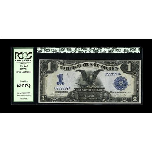 48B. CURRENCY – Notes sold referencing a third-party grading service are sold "as is" without any express or implied warranty, except for a guarantee by Auctioneer that they are genuine. Grading, condition or other attributes of any lot may have a material effect on its value, and the opinion of others, including independent grading services such as PCGS Currency, PMG, and CGA may differ with that of Auctioneer. Auctioneer shall not be bound by any prior or subsequent opinion, determination, or certification by any independent grading service. The grades assigned by any grading service to any note offered in any Heritage Currency Auctions of America sale represent the opinion of that grading service only,and may differ in material respects from the grade assigned to the same note in previous sales by HCAA or other auction companies, or from the grade that would be assigned by any other grading service. HCAA is unable to view any third party graded item outside of the holder, and specifically disclaims any liability of any kind to bidders who bid on third party graded items for mistakes of commission or omission by any grading service. Bidders are hereby notified that currency grading standards have changed in the past and are subject to change in the future, and that the only remedy bidder has with respect to third party graded notes is to deal directly with the grading service certifying the item. Bidders are also advised that Auctioneer makes no representation or guarantee that any item obtained by Bidder will be assigned any particular grade by any particular grading service, and as noted herein, Bidder specifically waives any claim to right of return of any item because of the opinion, determination, or certification, or lack thereof, by any independent grading service. Certain warranties may be available from the grading services and the Bidder is referred to them for further details: Paper Money Guaranty (PMG), PO Box 4711, Sarasota FL 34230; PCGS Currency, PO Box 9458, Newport Beach, CA 92658; Currency Grading & Authentication (CGA), PO Box 418, Three Bridges, NJ 08887.