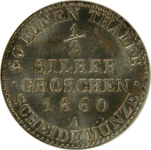 1/2 Groschen 1860A NGC MS-68. A fully struck and superbly lustrous piece with near flawless light golden toned surfaces