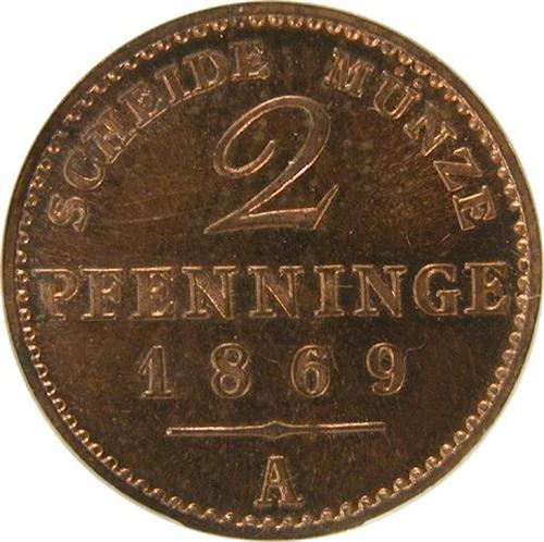 2 Pfennig 1869 NGC PR-64 Red. Great lustre and about 95% red