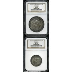 Prussia. Two Hundred Years of Prussia Commemorative pair 1901 including: 2 Mark, KM 525, MS65 NGC; and a 5 Mark, KM526, MS64 NGC. 2 coins Important notice: Heritage usually auctions material at the rate of 200-250 lots per hour. On some occasions eBay Live bid software or the Internet may not be able to keep up with the pace of the auction. We recommend placing a realistic absentee bid now as insurance to avoid disappointment. Occasionally the auctioneer may eliminate or reject an eBay Live bid, and the auctioneer may also reopen a lot after the close of the eBay live bidding (usually because we missed an audience bid), and may reject your bid even if it shows you as the winning bidder. By bidding via eBay Live, you agree that Heritage may award the lot to another bidder at its sole discretion under the circumstances described above or any other reasonable circumstances. Also please note that all Heritage lots purchased through eBay Live carry a 20% Buyer's Premium. Please make sure you read the Terms and Conditions before you bid.