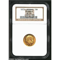 Prussia. Wilhelm Gold 10 Marks 1872A, KM502, MS64 NGC. Important notice: We expect to be auctioning lots at the rate of 200-250 per hour. Sometimes eBay Premier live bid software cannot keep up with that pace, so we strongly recommend that you place a realistic proxy bid now as insurance to avoid disappointment. Also please note that all Heritage/CAA lots purchased through eBay Premier carry a 20% Buyer's Premium. Please make sure you read the Terms and Conditions.