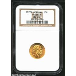 Prussia. Wilhelm Gold 10 Marks 1872A, KM502, MS65 NGC. Important notice: We expect to be auctioning lots at the rate of 200-250 per hour. Sometimes eBay Premier live bid software cannot keep up with that pace, so we strongly recommend that you place a realistic proxy bid now as insurance to avoid disappointment. Also please note that all Heritage/CAA lots purchased through eBay Premier carry a 20% Buyer's Premium. Please make sure you read the Terms and Conditions.