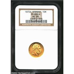 Prussia. Wilhelm Gold 10 Marks 1872A, KM502, MS66 NGC. Important notice: We expect to be auctioning lots at the rate of 200-250 per hour. Sometimes eBay Premier live bid software cannot keep up with that pace, so we strongly recommend that you place a realistic proxy bid now as insurance to avoid disappointment. Also please note that all Heritage/CAA lots purchased through eBay Premier carry a 20% Buyer's Premium. Please make sure you read the Terms and Conditions.