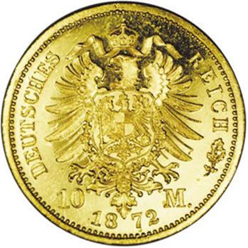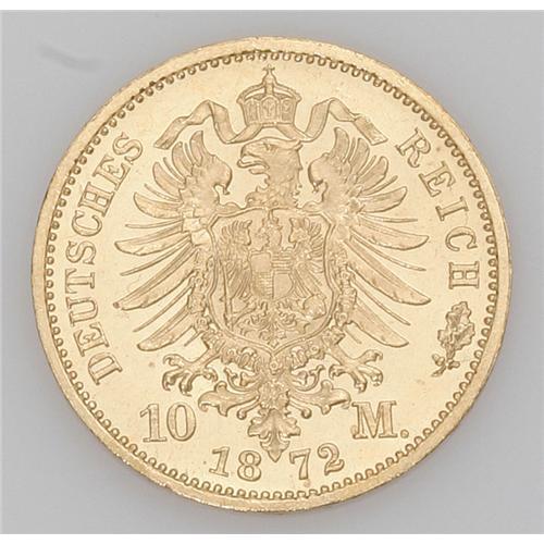 <B>Prussia. Wilhelm I gold 10 Mark 1872-A, </B></I>KM502, Proof, nice reflective fields, some handling on the obverse. The SCWC value in Proof is $1600.