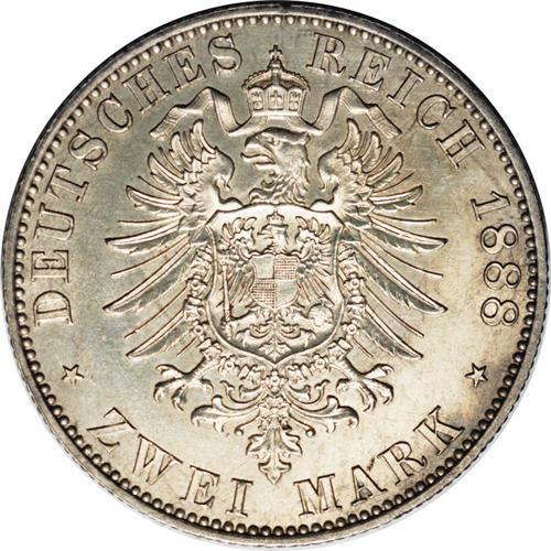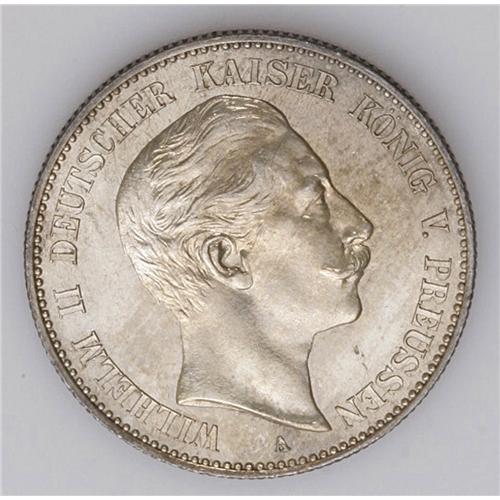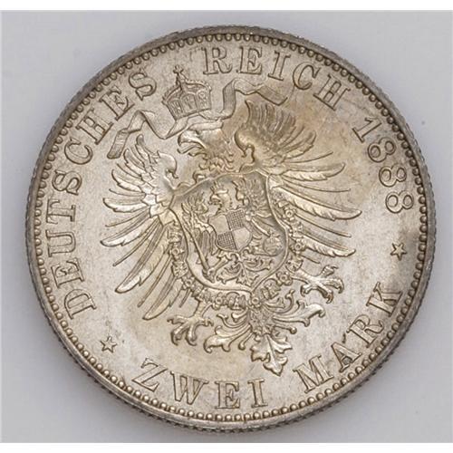 <B>Prussia. Wilhelm II 2 Marks 1888A, </B></I>KM511, MS61 NGC, with light silvery toning. A very scarce one year type.