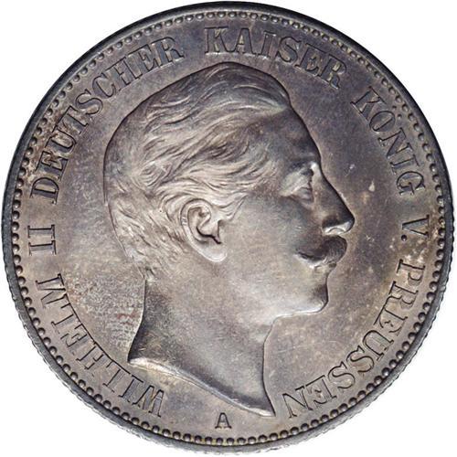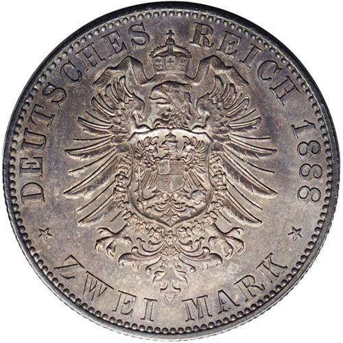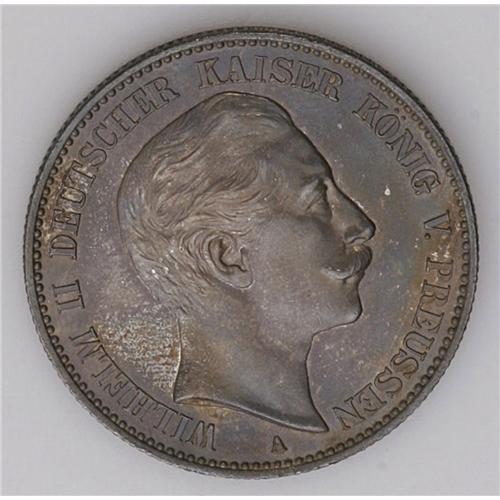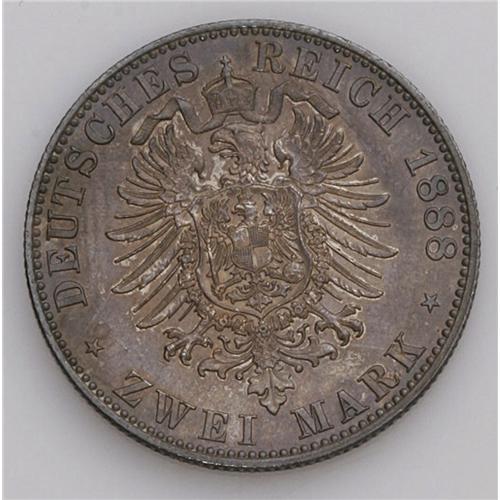 <B>Prussia. Wilhelm II 2 Marks 1888A, </B></I>KM511, MS62 NGC, with medium blue gray toning. A very scarce one year type.