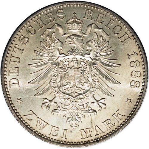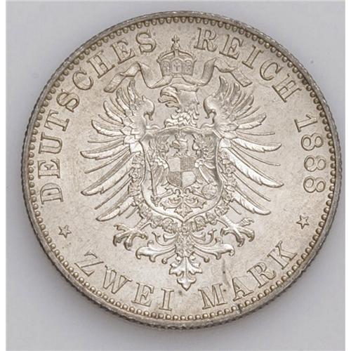 <B>Prussia. Wilhelm II 2 Marks 1888A, </B></I>KM511, MS64 NGC with very light silvery toning. A very scarce one year type.