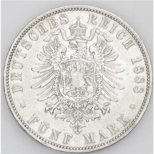 Prussia. Wilhelm II 5 Marks 1888A, KM513, VF once dippe Prussia. Wilhelm II 5 Marks 1888A,
