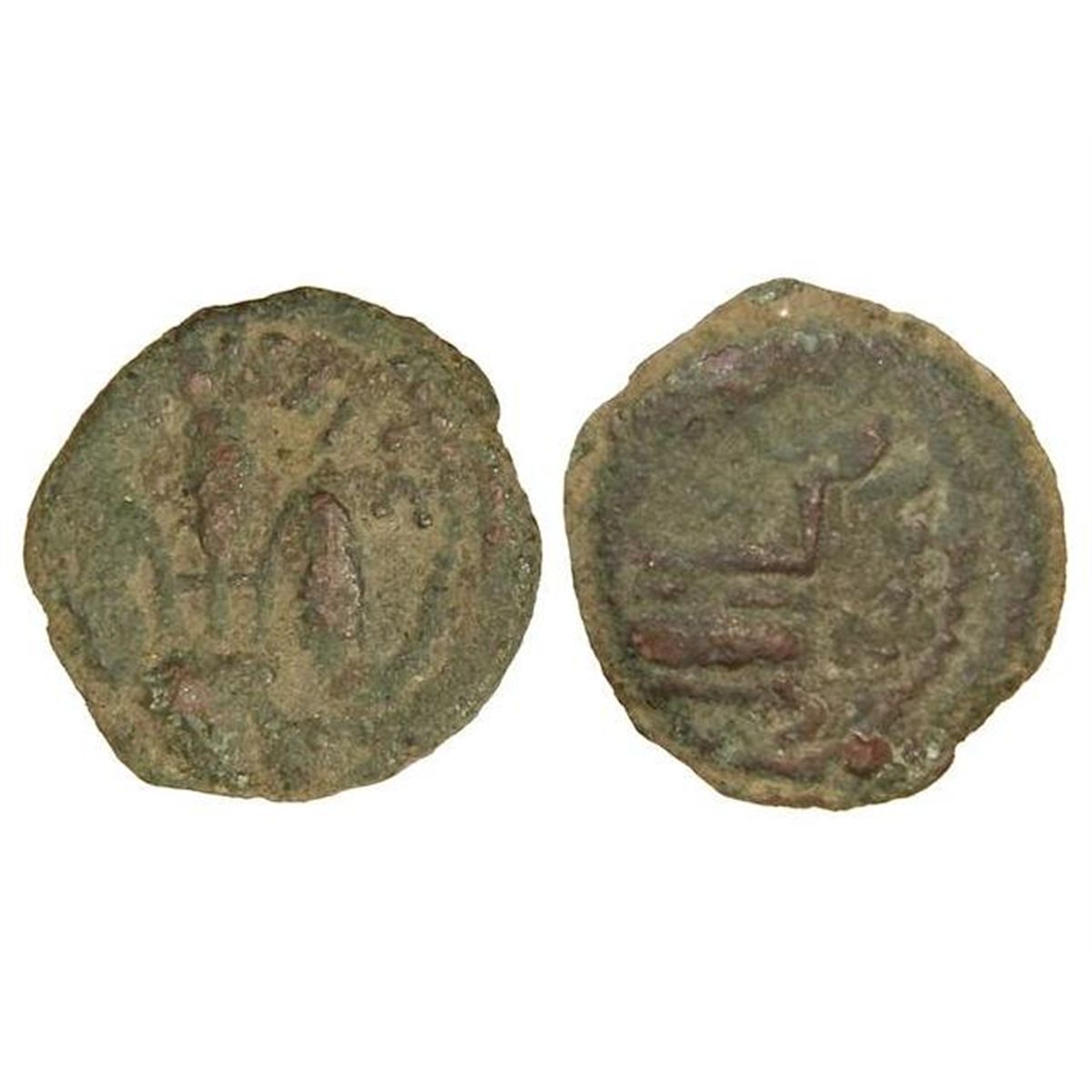 Prutah. - 26-36 d.C. - PONCIO PILATOS. - JUDEA. - Anv.: Tres espigas y leyenda. Rev.: Proa de nave. 2 grs. AE. Pátina verde. GIC-5622. MBC-. - -